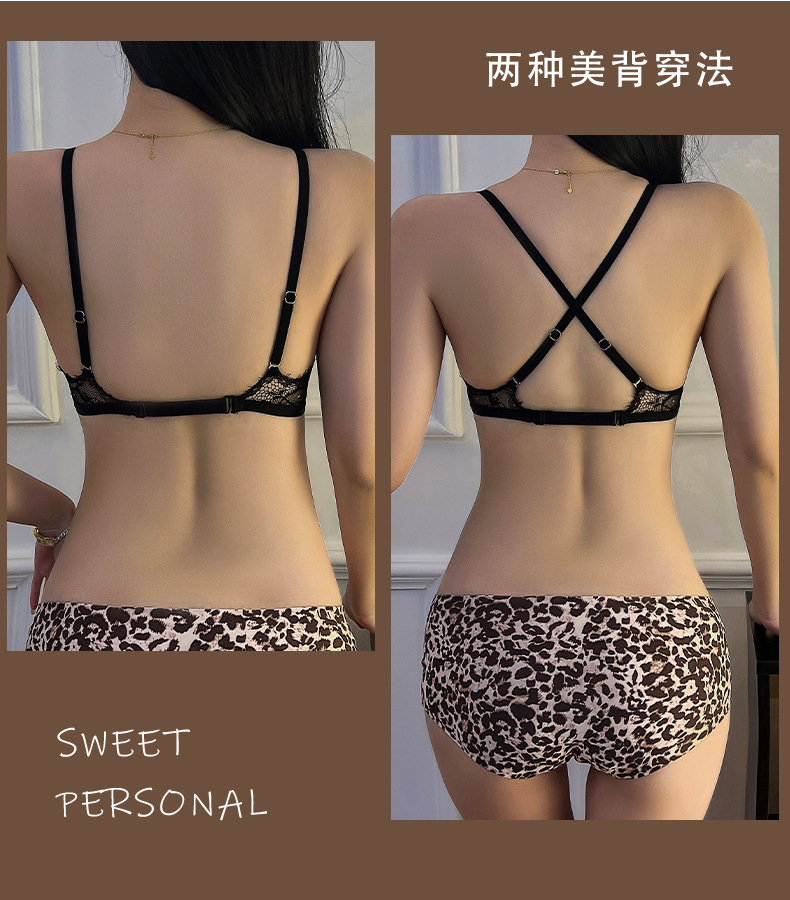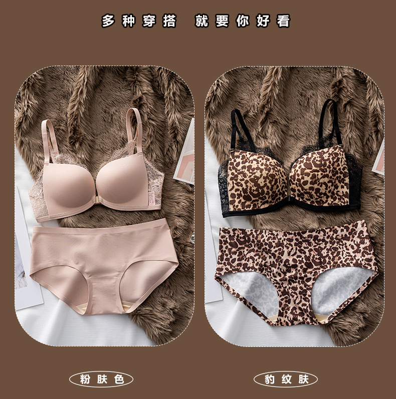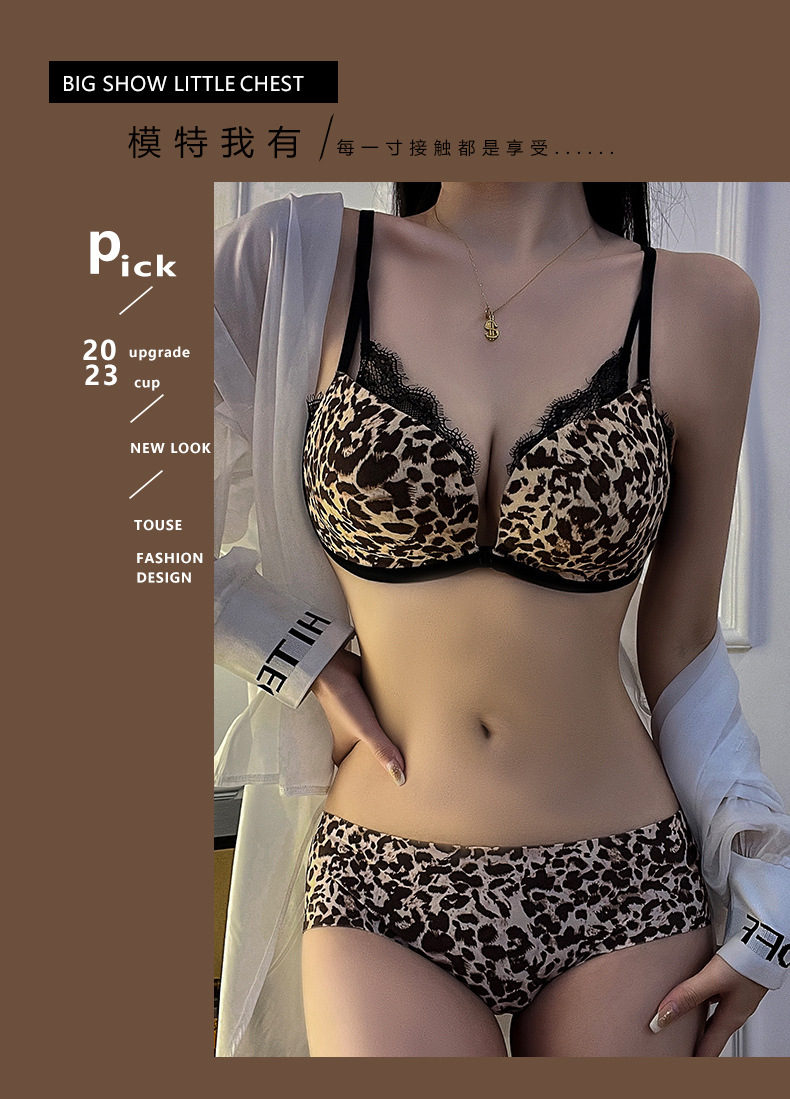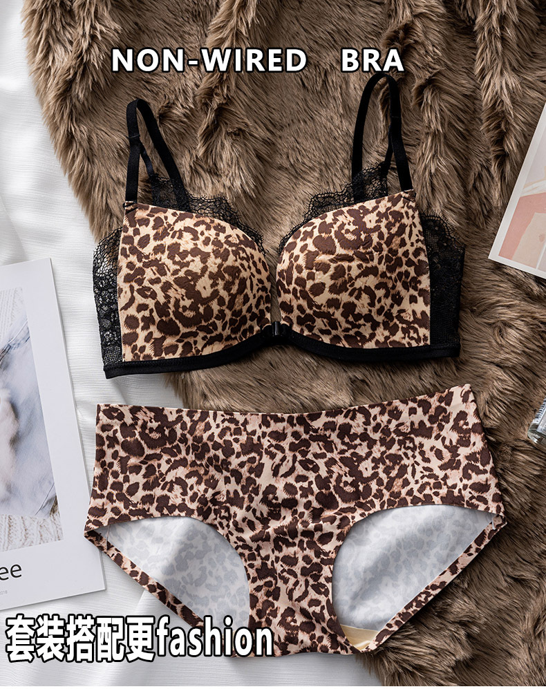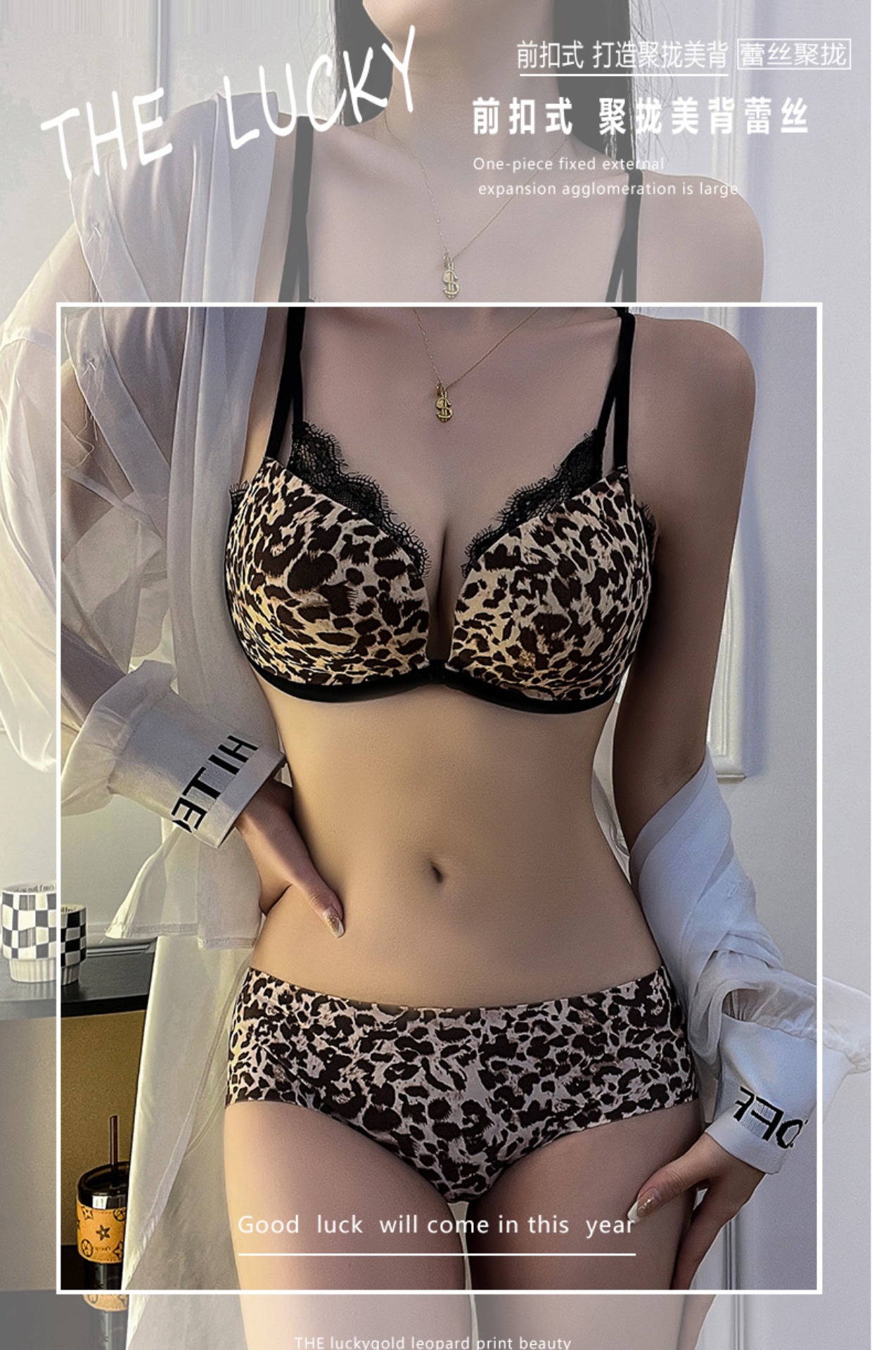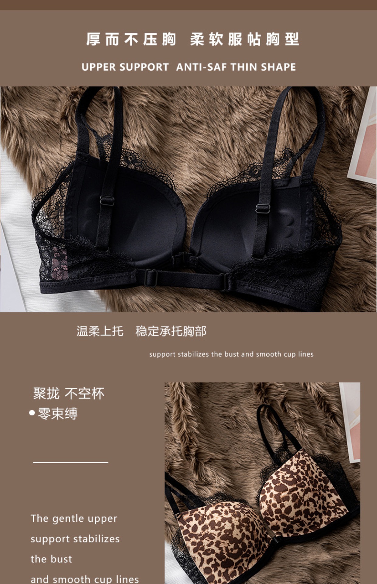 Deseo puro frente hebilla pequeño pecho sexy encaje leopardo ropa interior sin anillo de acero colección superior sujetador 018