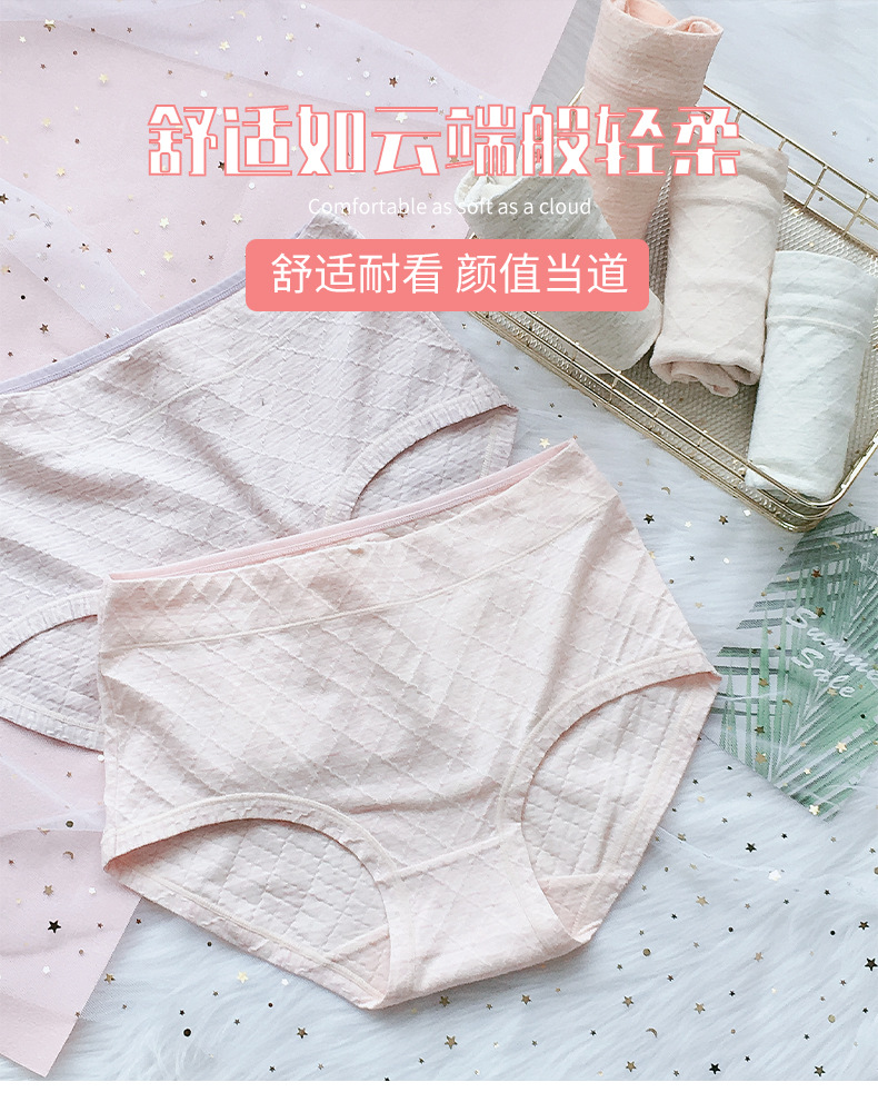 Ropa interior de cintura alta de algodón fresco cómodo rombo agradable para la piel hilo de algodón ropa interior de algodón color sólido de las mujeres más el tamaño de calzoncillos elásticos