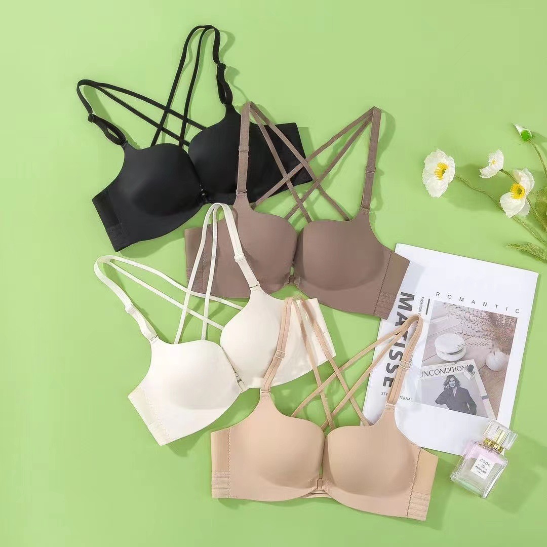 Nuevo 2119 simple moda brillante Cruz trasera frente hebilla ropa interior de las mujeres sexy push up medio grueso sujetador verano