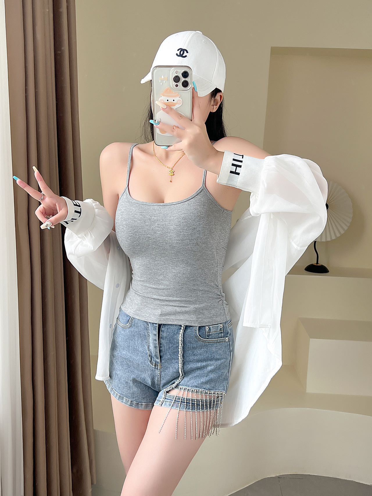 Camisola de espalda de belleza de verano para mujer con almohadilla para el pecho engrosada, soporte superior, interior y exterior, camisola de expansión de fondo y exterior