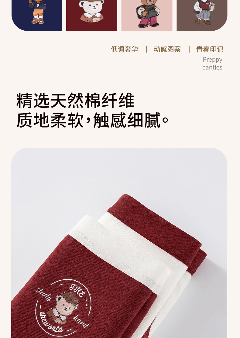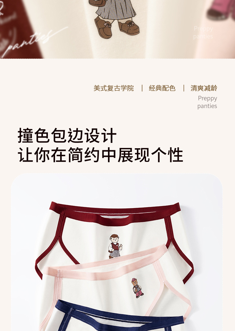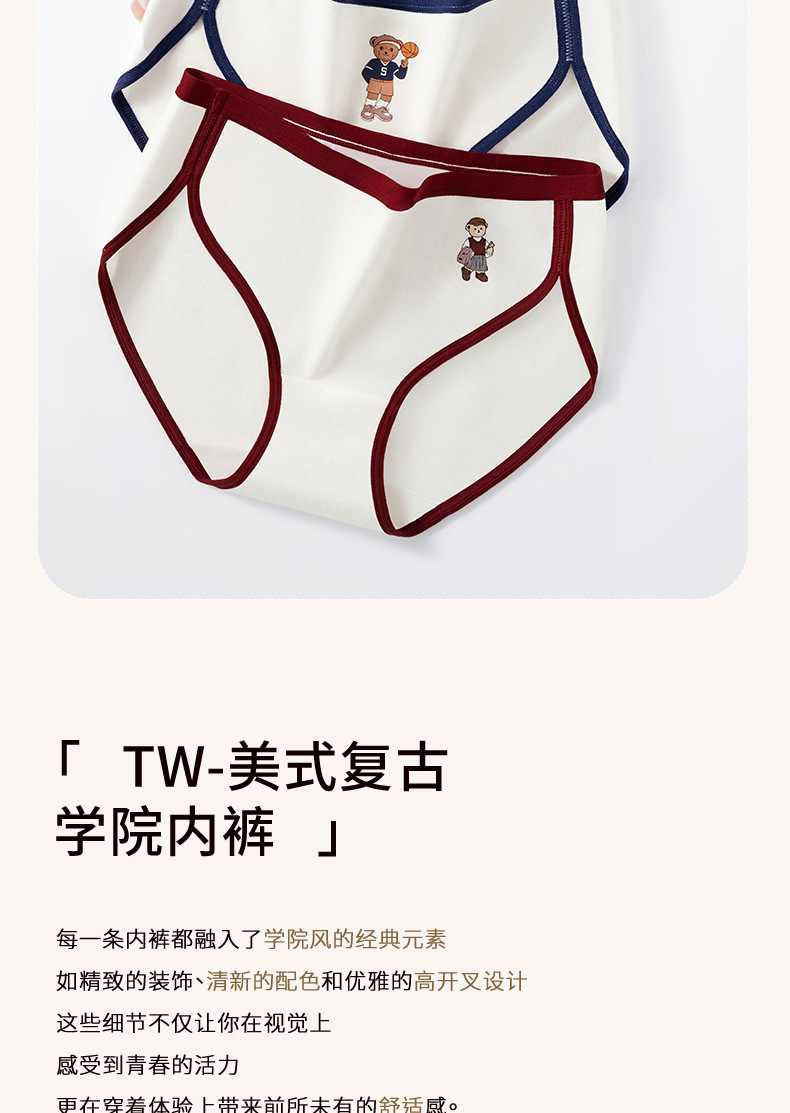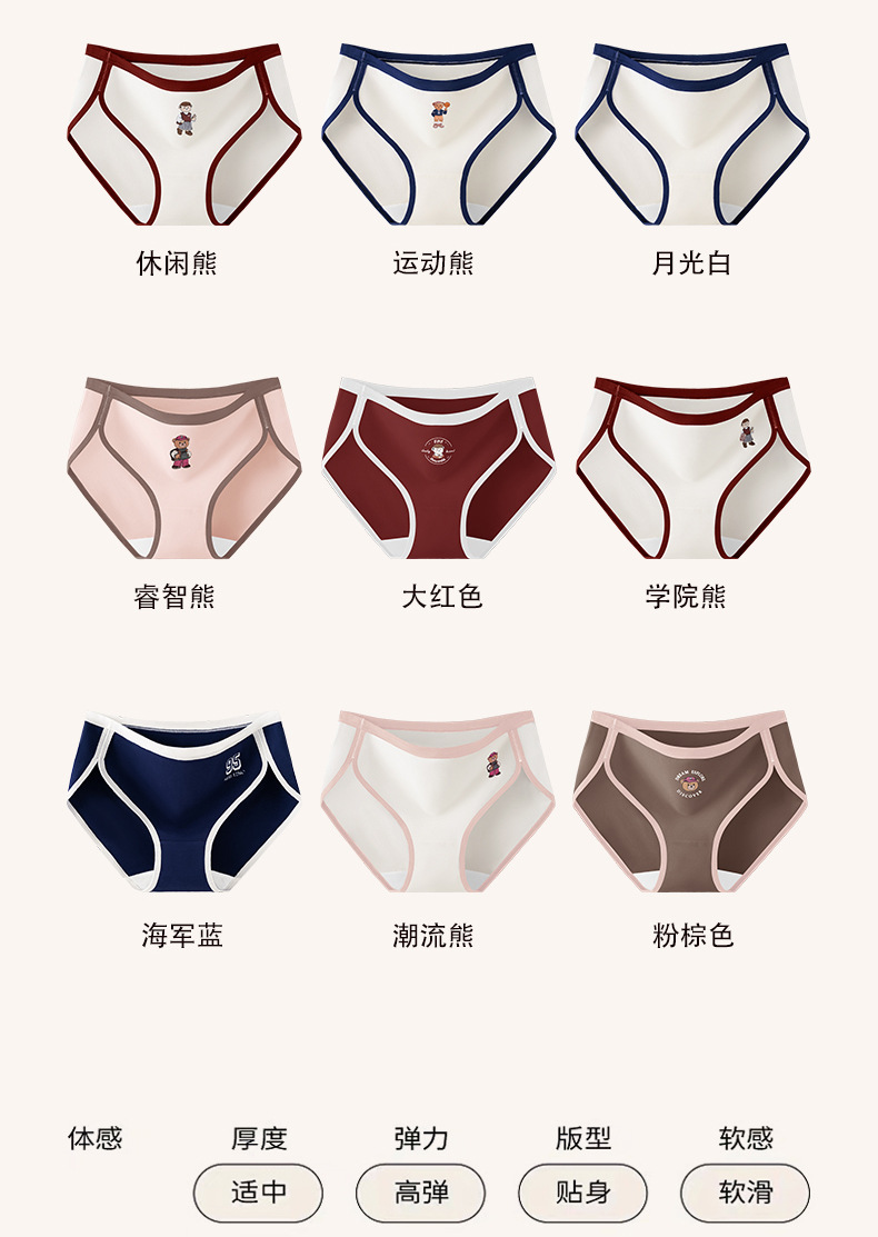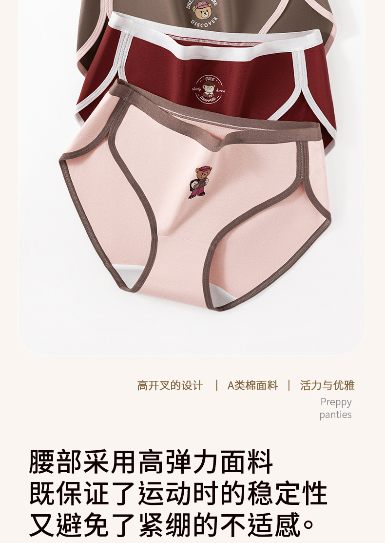 Clase A de ropa interior de oso de algodón de Xinjiang para mujer entrepierna de algodón puro entrepierna antibacteriana para mujer nueva ropa interior retro estadounidense para mujer