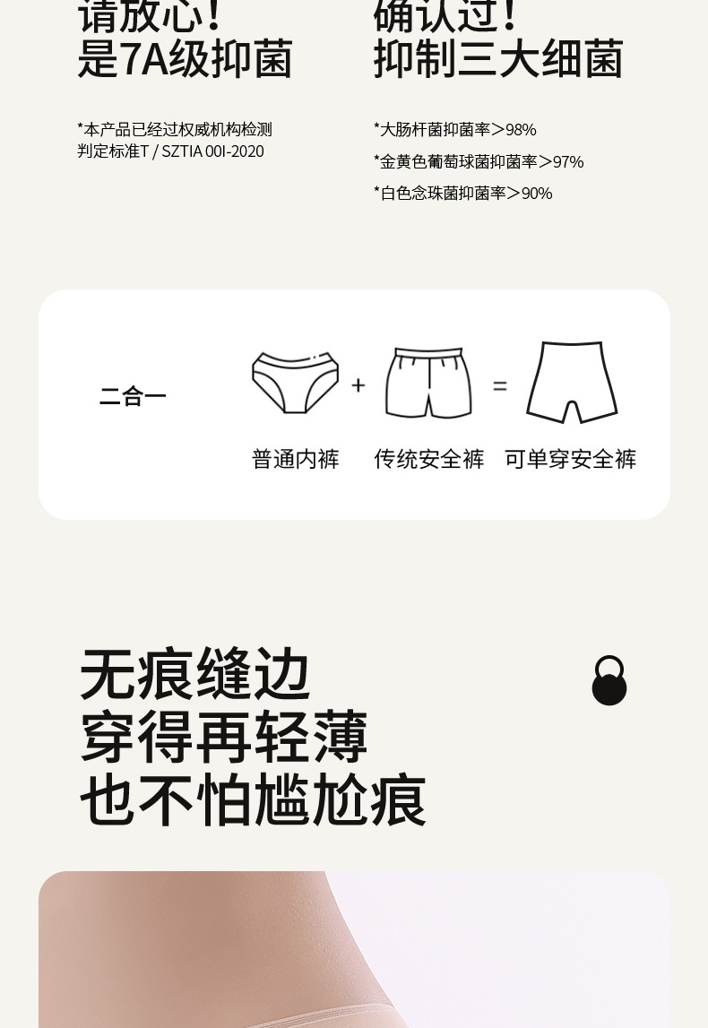 Pantalones de seguridad sin costuras, leggings, bragas, dos prendas, anti-desgaste, algodón antibacteriano, entrepierna, bóxer, pantalones de seguridad, leggings, cabeza femenina
