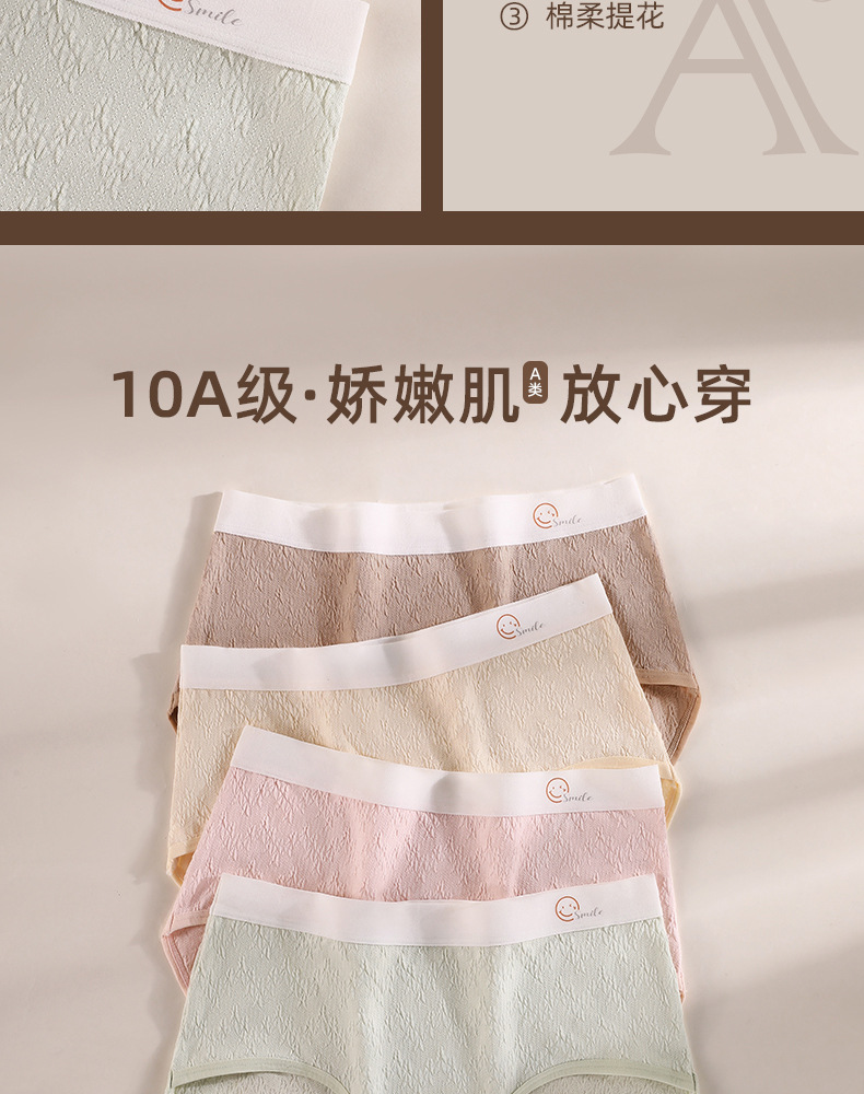 Ropa interior de algodón para mujer 10A entrepierna antibacteriana transpirable calzoncillos de cintura media para mujer Clase A ropa interior de mujer sin costuras de algodón para bebé verano