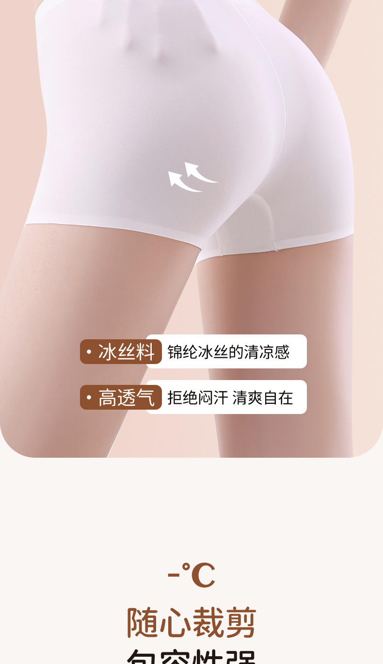 Taobao estilo explosivo calzoncillos boxer de seda de hielo para mujer anti-desgaste 2025 sin costuras transpirables bragas gratis dos en uno pantalones cortos de seguridad