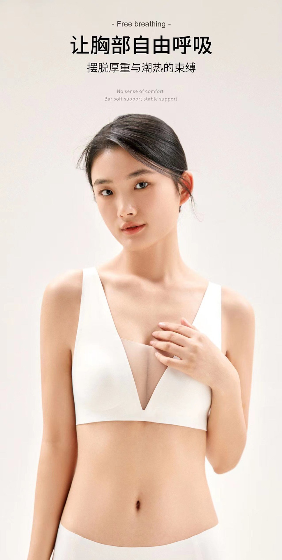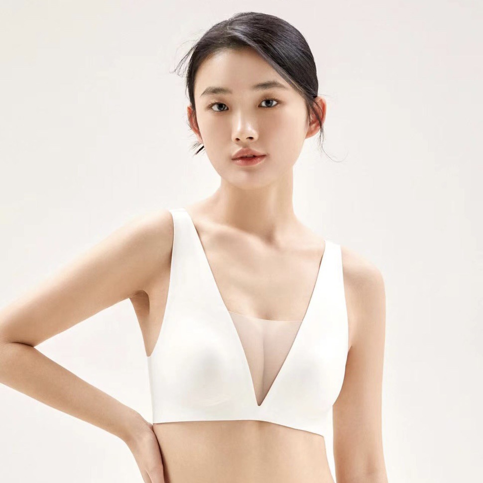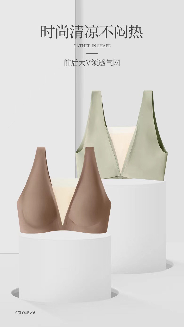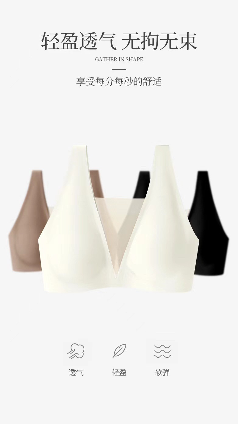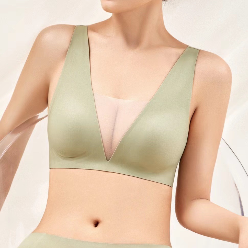5555 popular tira de jalea soporte suave malla profunda V ligera ropa interior cómoda pecho grande que adelgaza el pecho pequeño empuja hacia arriba el sujetador