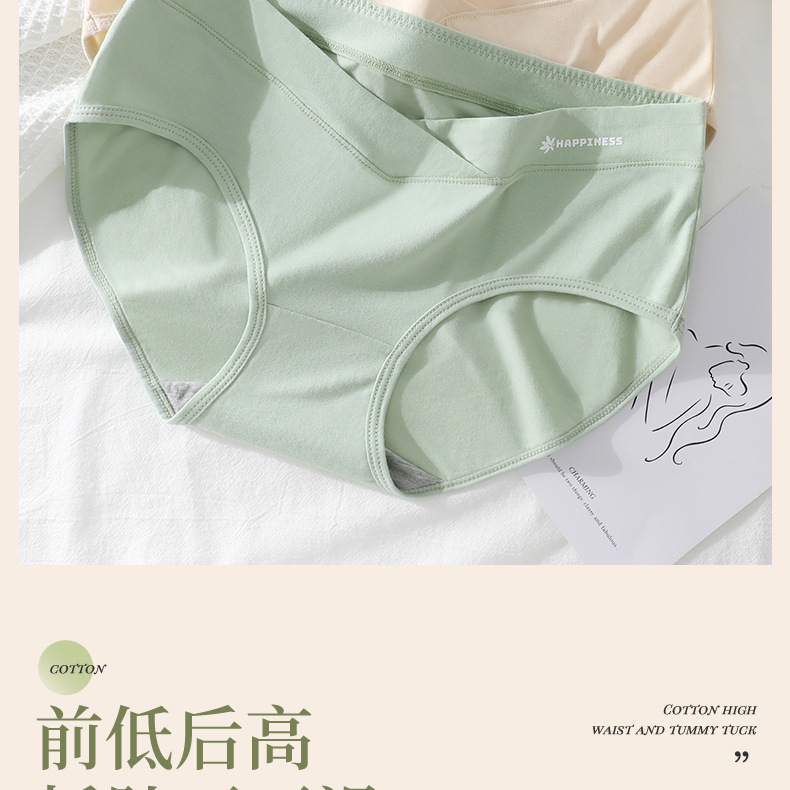 Ropa interior de maternidad de algodón transpirable de algodón antibacteriano inferior entrepierna embarazada temprano, medio y tardío posparto sin costuras más ropa interior de maternidad de tamaño