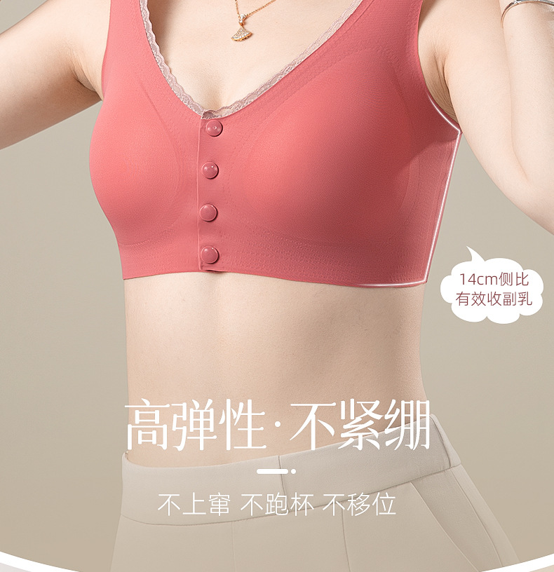 Seamless mamá ropa interior de las mujeres inalámbrico pequeño pecho push up mama colección de mediana edad y ancianos chaleco sujetador hebilla delantera sujetador