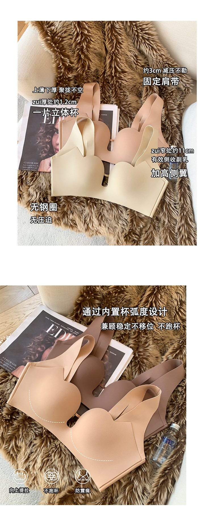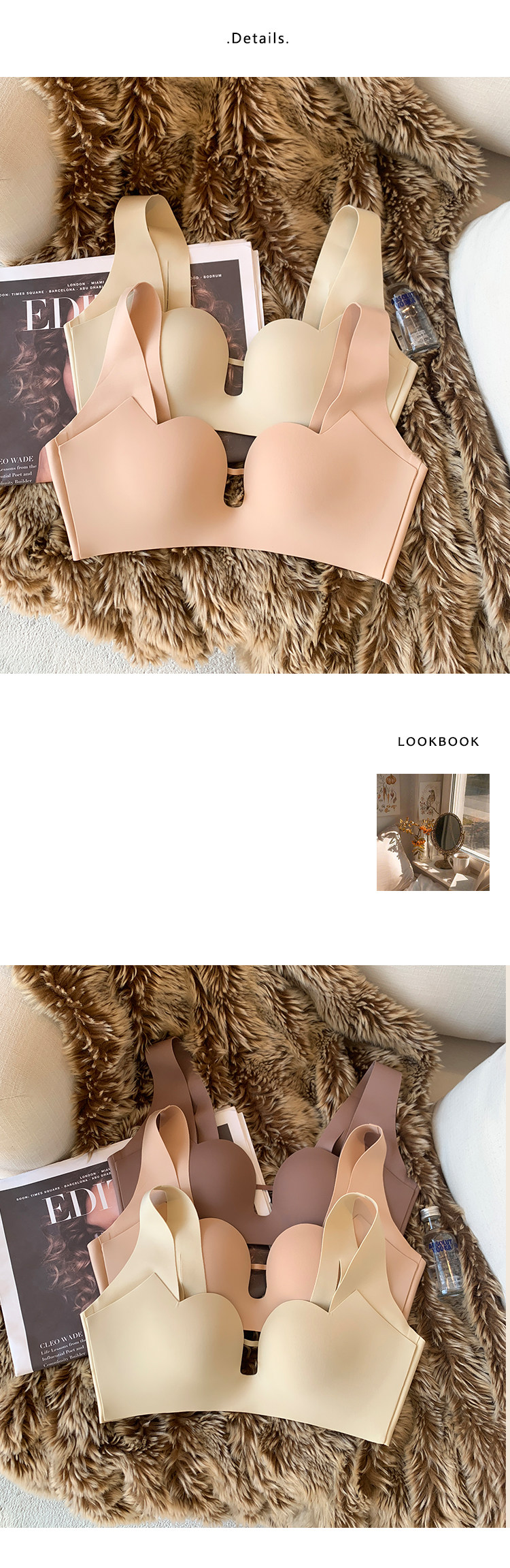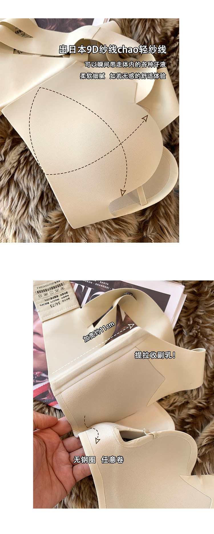 Ropa interior sin costuras japonesa superior de las mujeres delgada inferior grueso pequeño pecho push up soporte superior inalámbrico soporte suave sujetador de mama