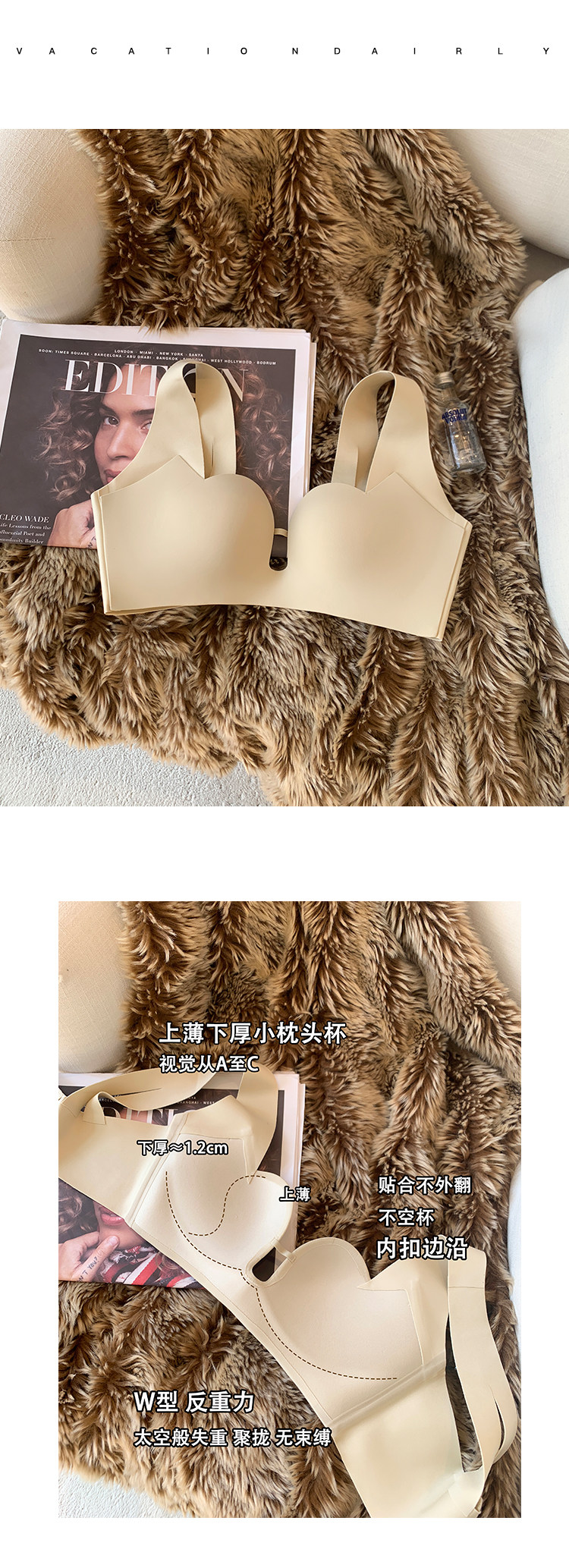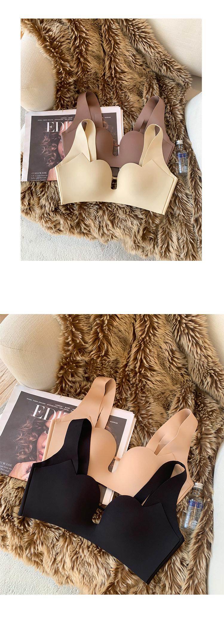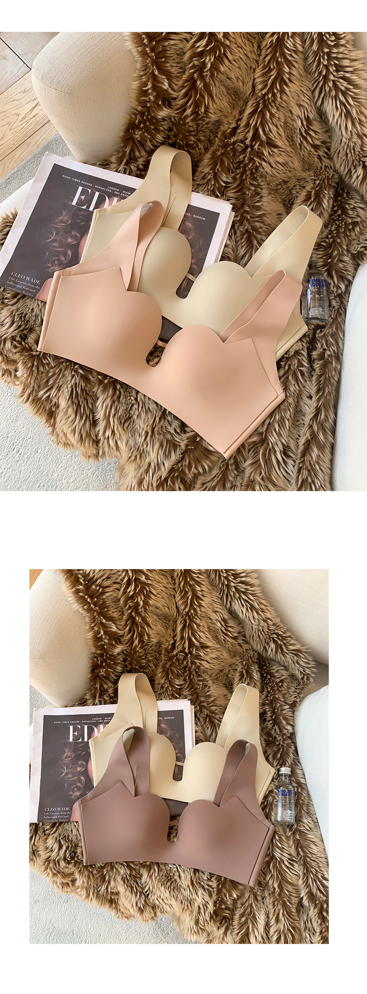 Ropa interior sin costuras japonesa superior de las mujeres delgada inferior grueso pequeño pecho push up soporte superior inalámbrico soporte suave sujetador de mama