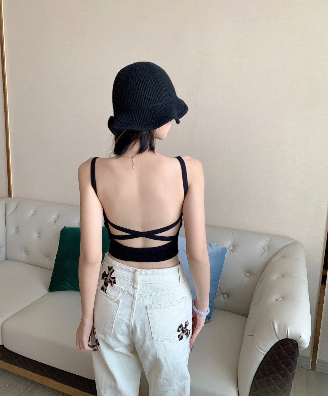 Belleza espalda camisola de las mujeres taza fija interior y exterior desgaste sexy Hot Girl backless camisola base tubo superior chaleco