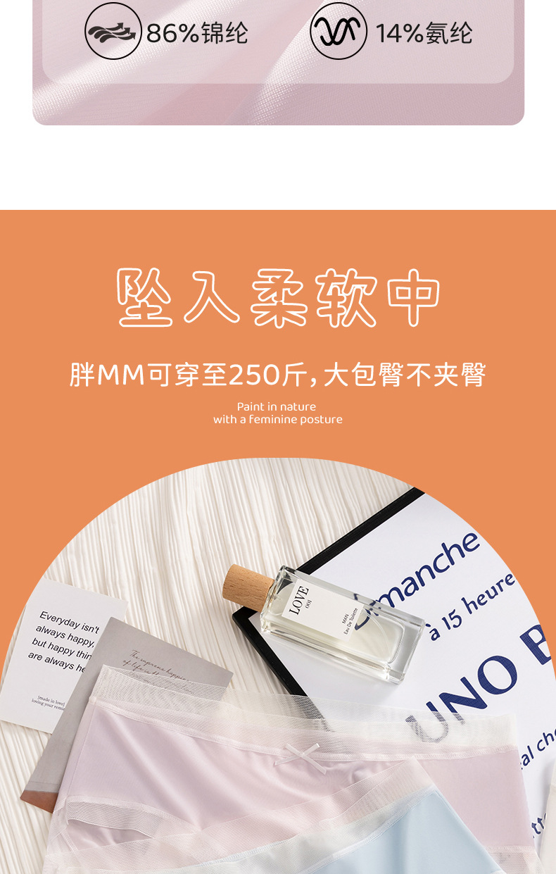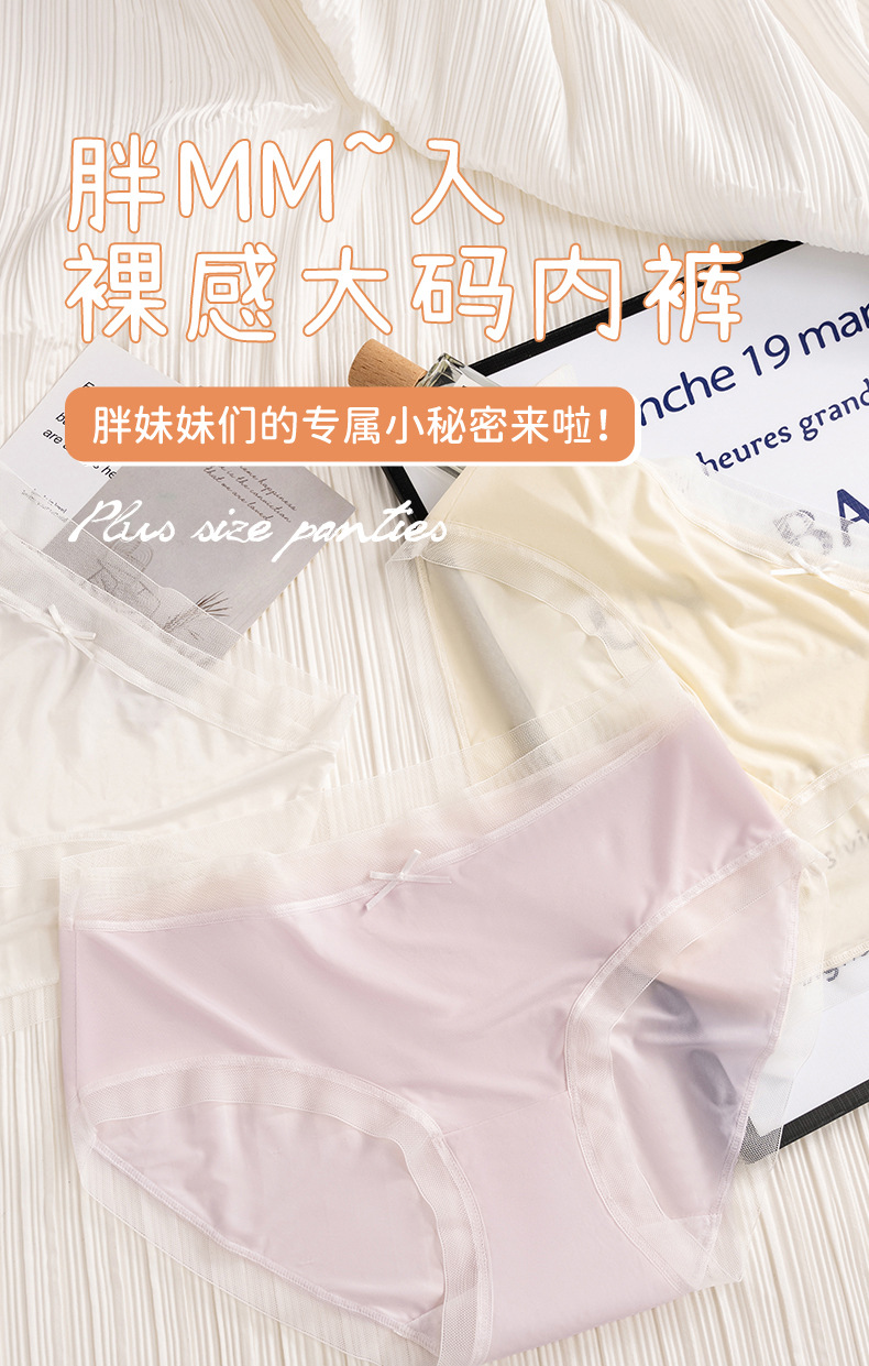 Bragas de seda de hielo de talla grande para niñas gordas MM bragas de seda de hielo 100% algodón entrepierna antibacteriano entrepierna transpirable calzoncillos de mujer