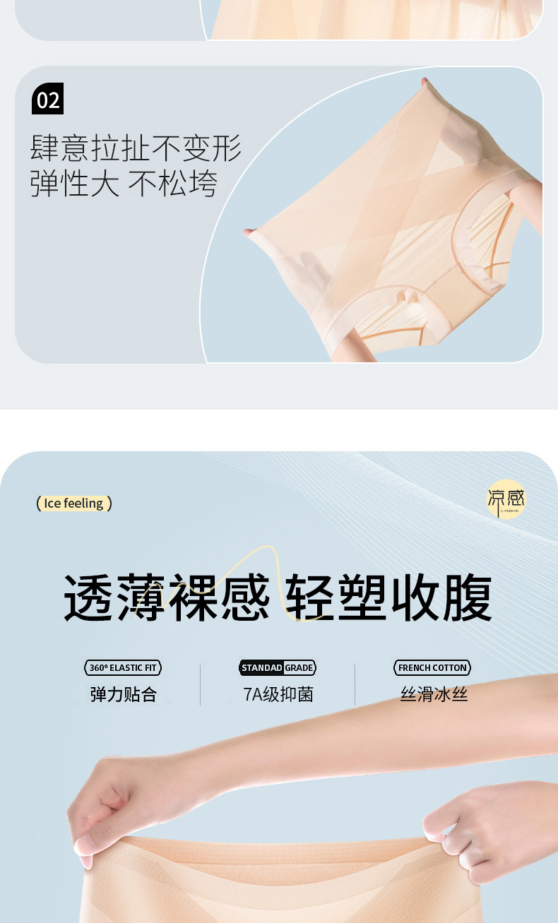 Los pantalones para el abdomen fortalecen el efecto, la barriga, la cintura alta, los pantalones para levantar la cadera de seda de hielo, los pantalones delgados, sin rizos y sin costuras que moldean el cuerpo, ropa interior de verano