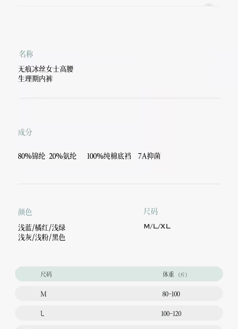 Ropa interior fisiológica de seda de hielo, ropa interior femenina, período menstrual, a prueba de fugas, niña, tía, especial para la higiene, cintura alta, refrescante