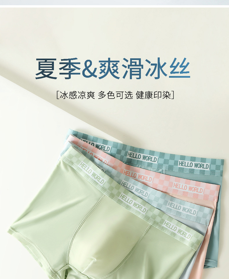 Ropa interior de los hombres del verano Delgado antibacteriano transpirable niños hielo seda Boxer shorts sin costuras juventud más tamaño ropa interior hombres