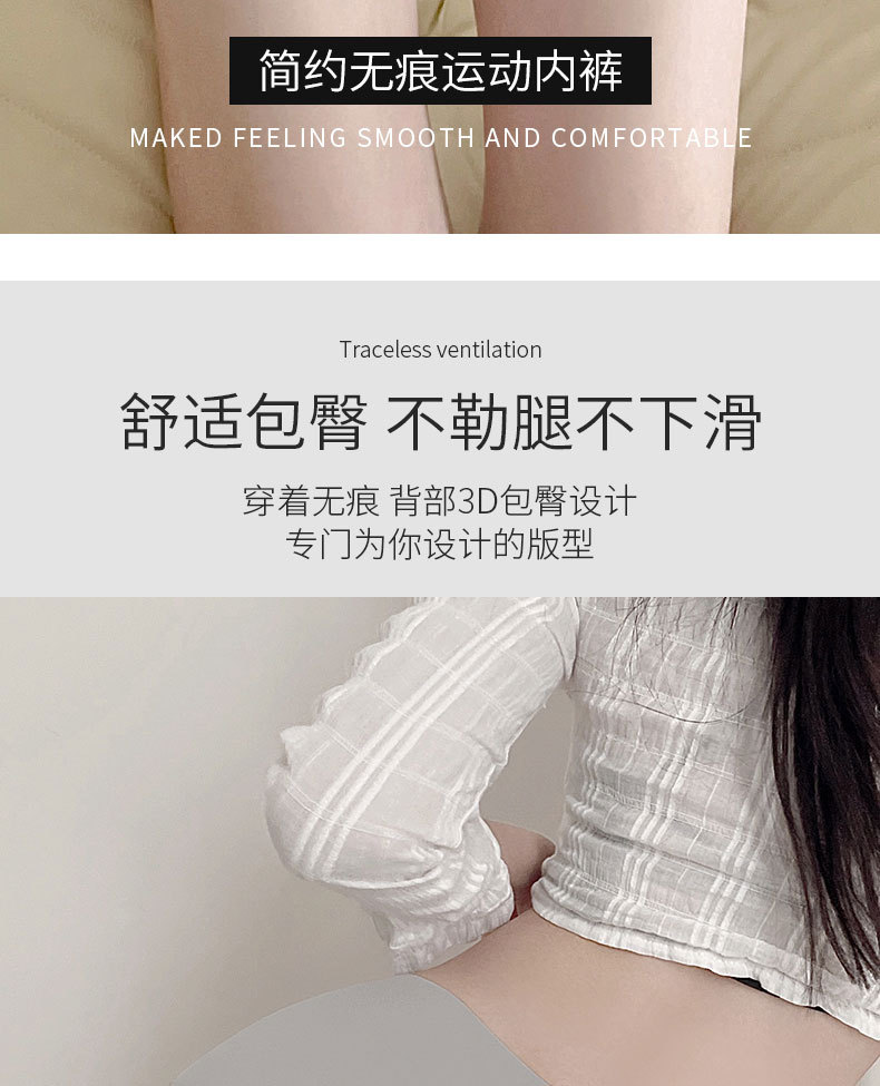 Ropa interior de seda de hielo verano de las mujeres delgada inferior de algodón puro entrepierna cintura media de la muchacha del vientre contracción cadera levantamiento pantalones cortos cabeza ropa interior deportiva