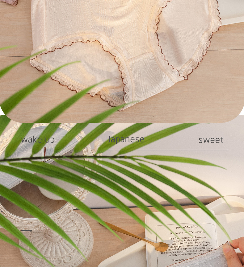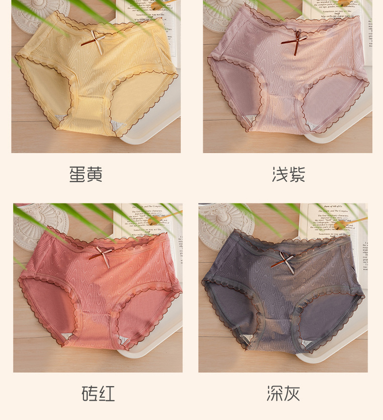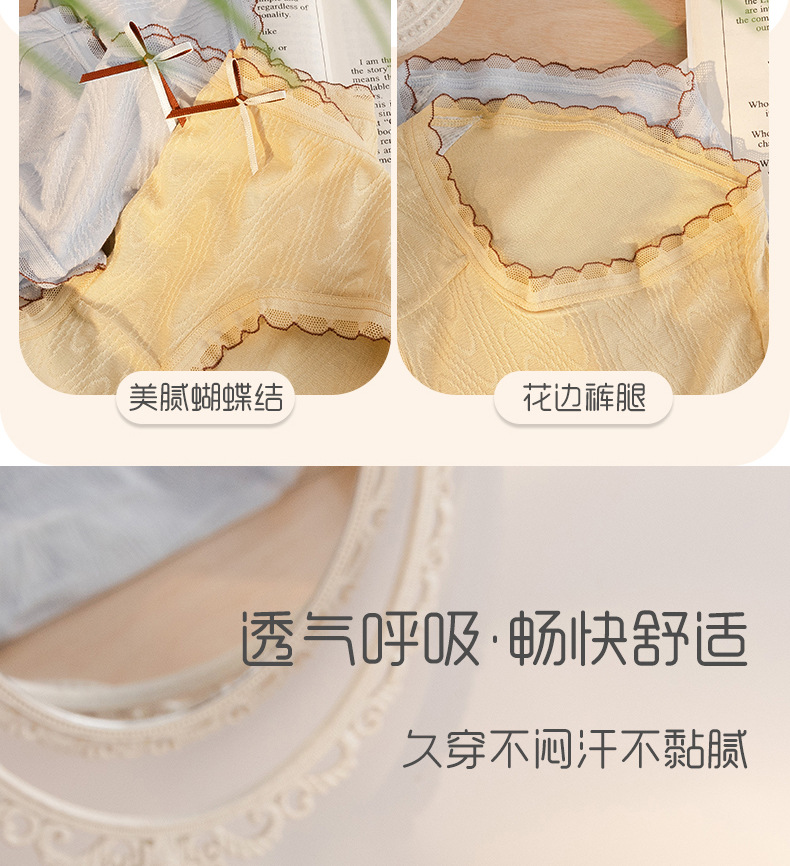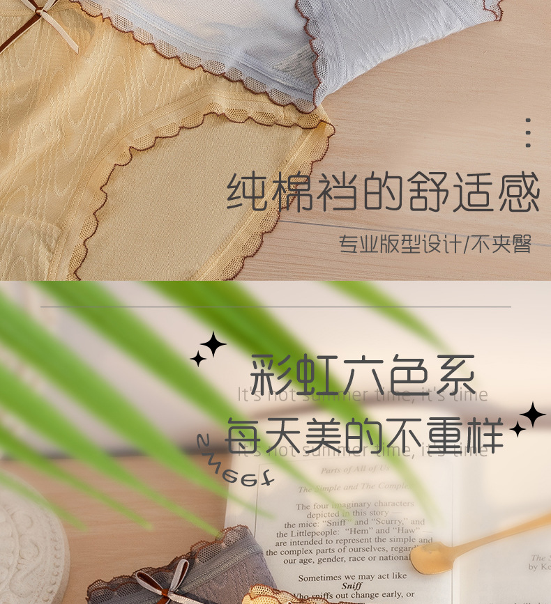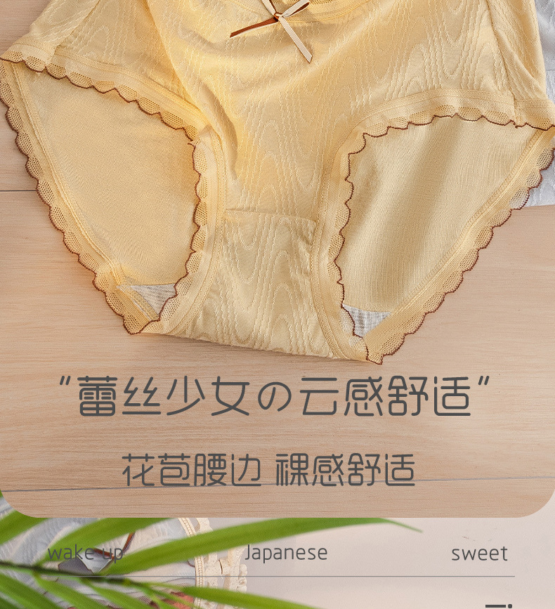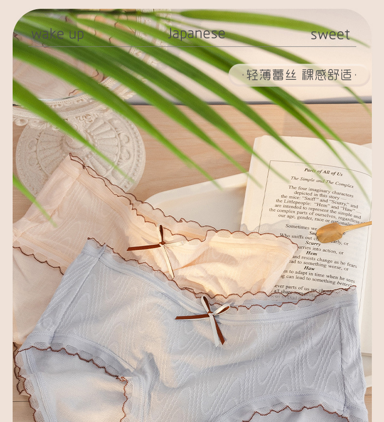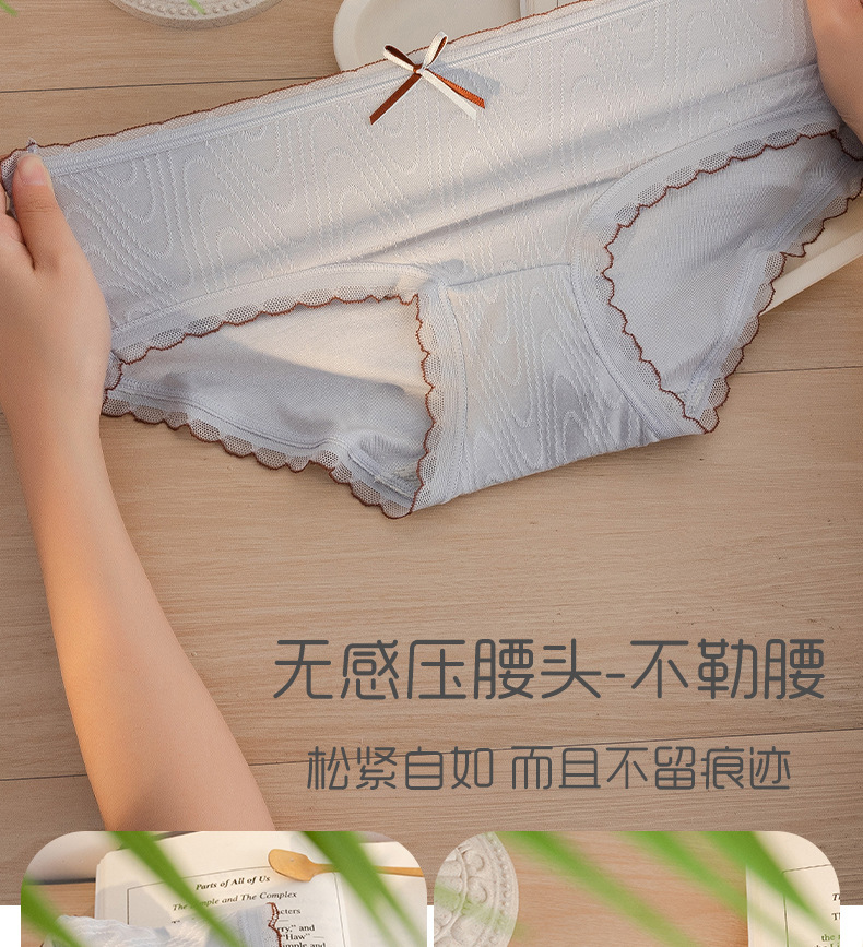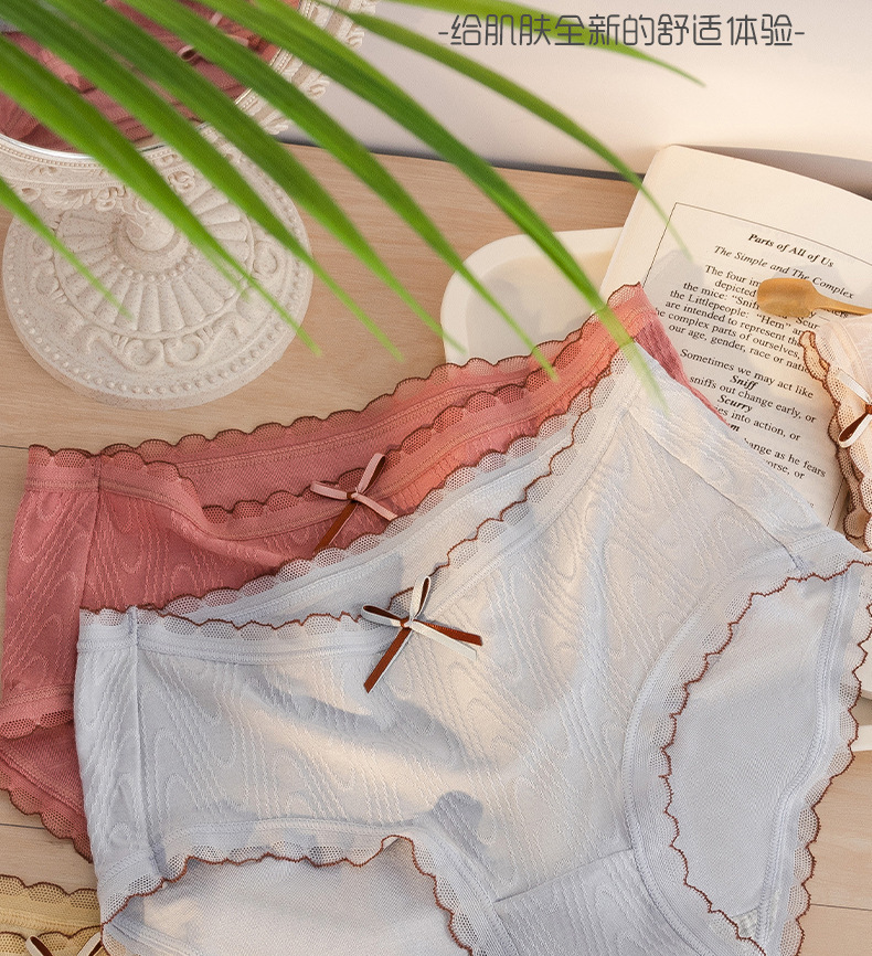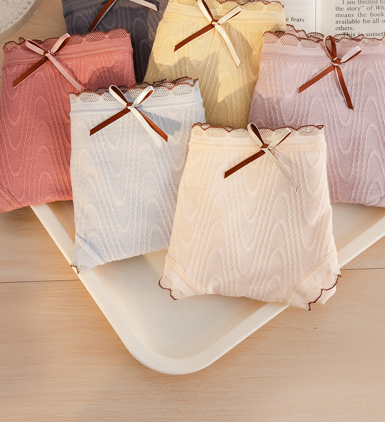 Chica japonesa sin costuras desnuda alta elástica cintura media cadera-envuelto dulce jacquard arco algodón antibacteriano entrepierna ropa interior de verano