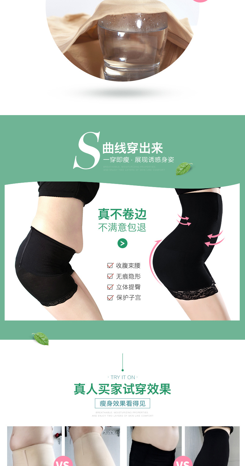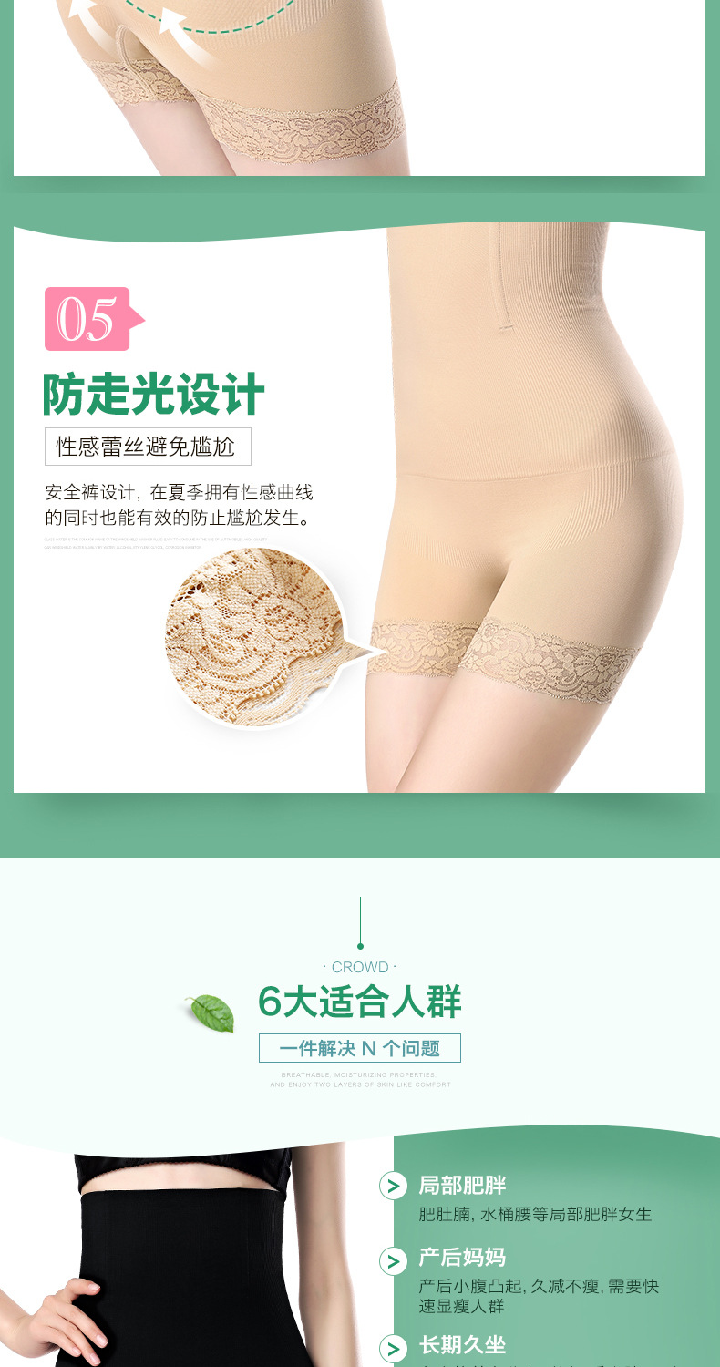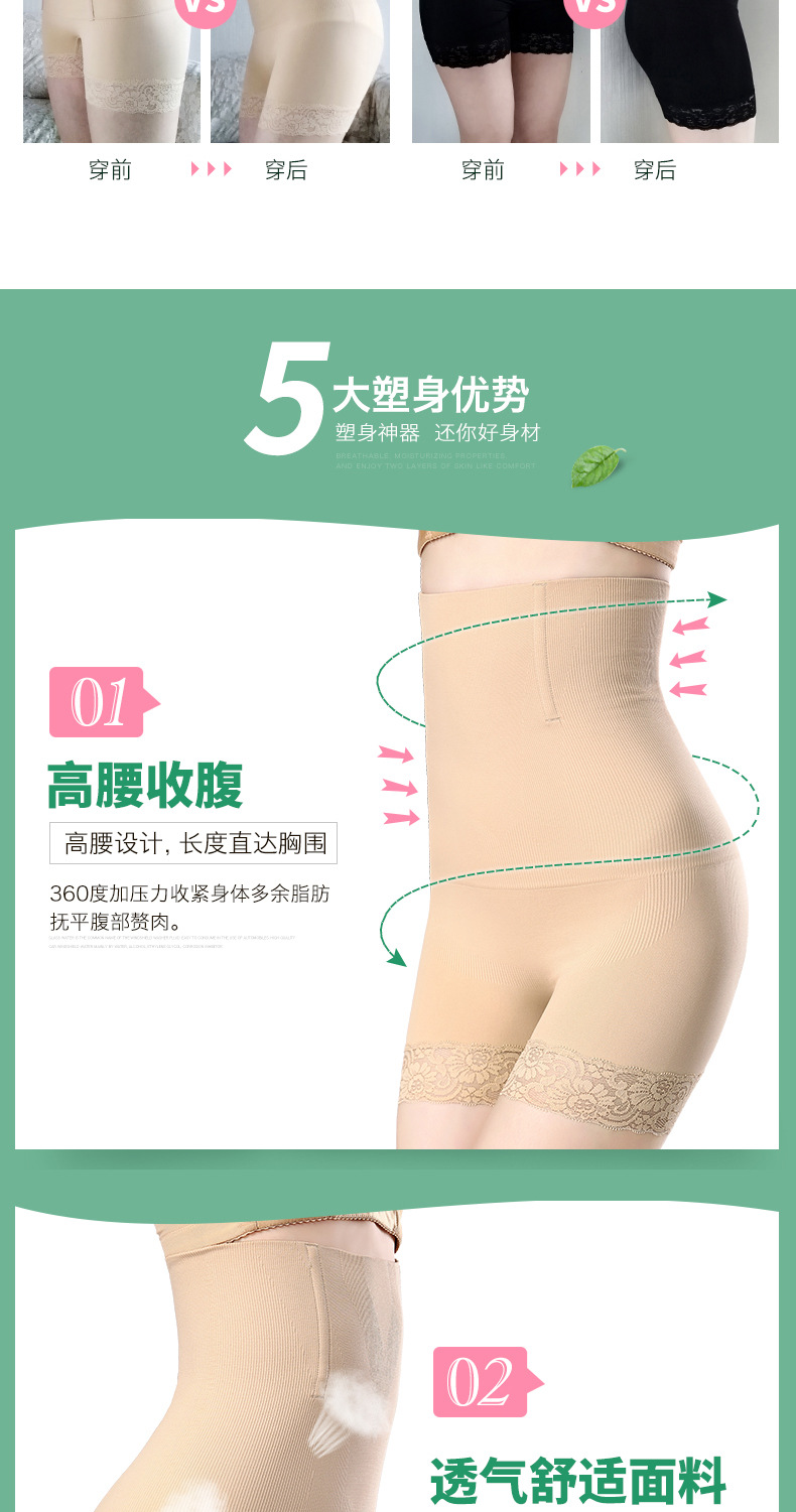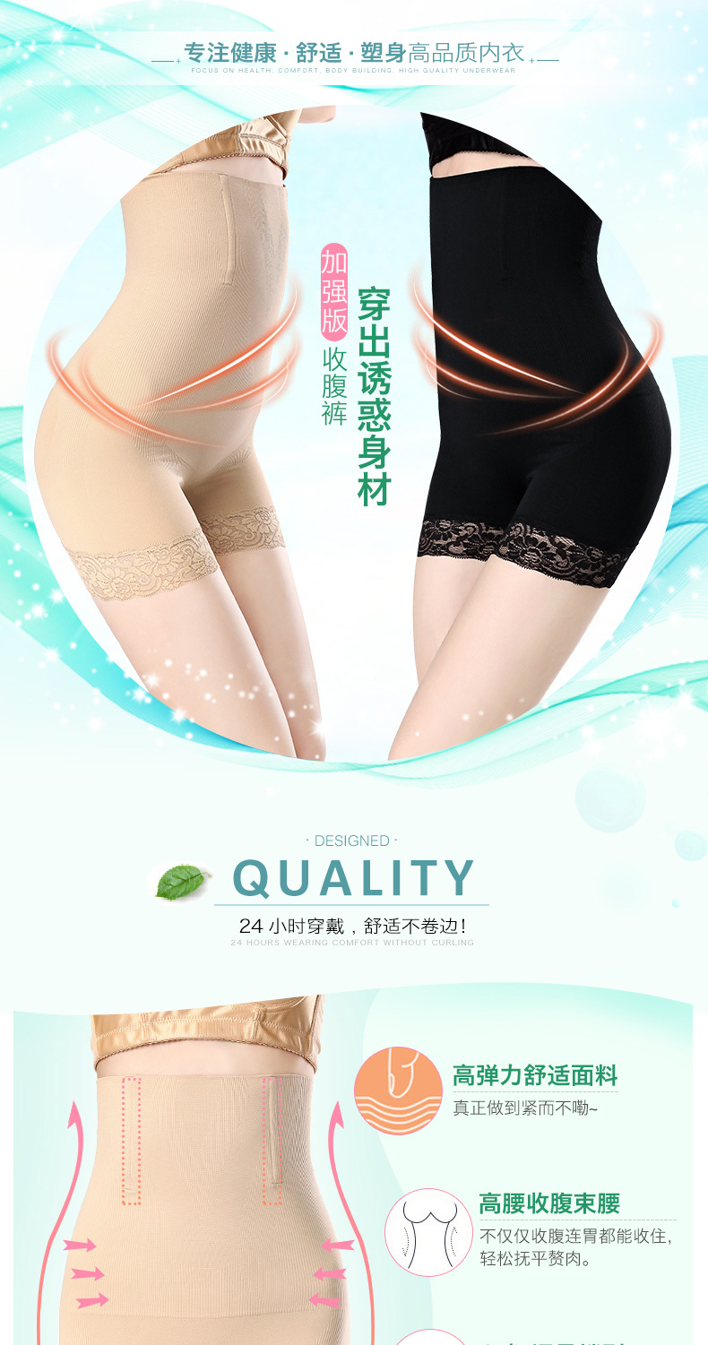 Cuerpo de boxeador de encaje de cintura alta posparto que forma el vientre que forma los pantalones vientre de las mujeres que contraen el estómago anti-exposición que basa los pantalones de seguridad del boxeador