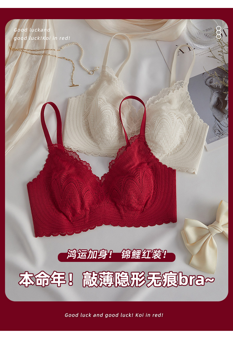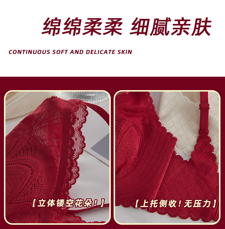 Ropa interior roja año de nacimiento traje de mujer delgada pecho grande mostrar pecho pequeño pecho contrayendo anti-flacidez sensación fresca sujetador boda 8007