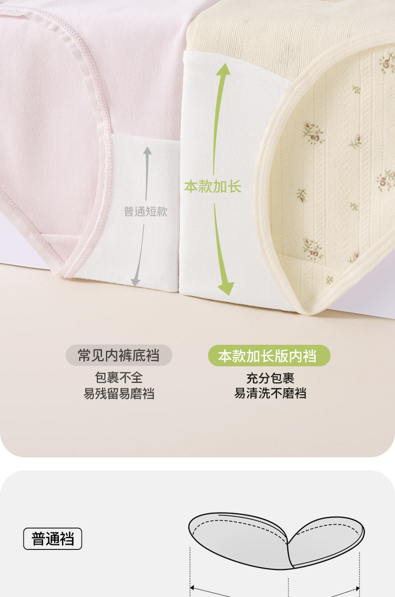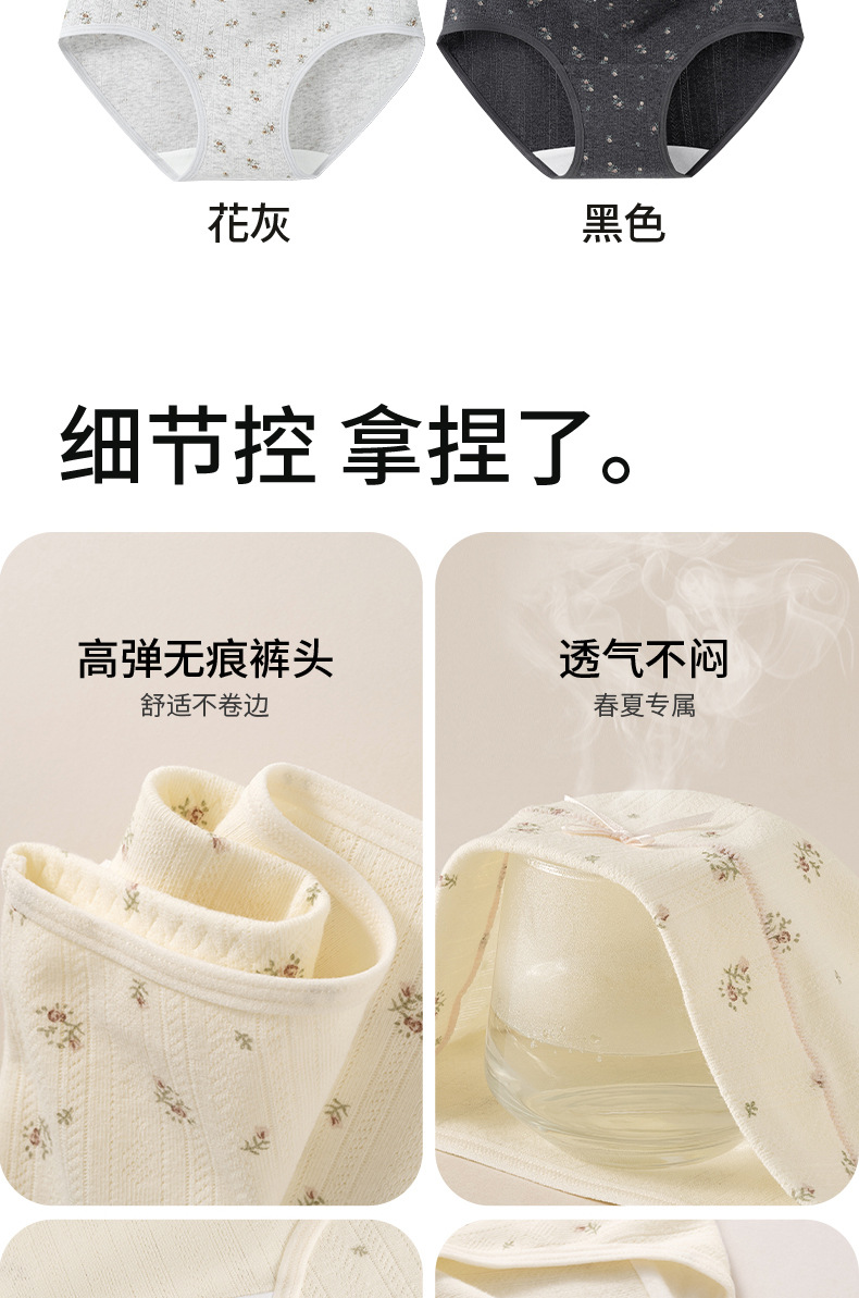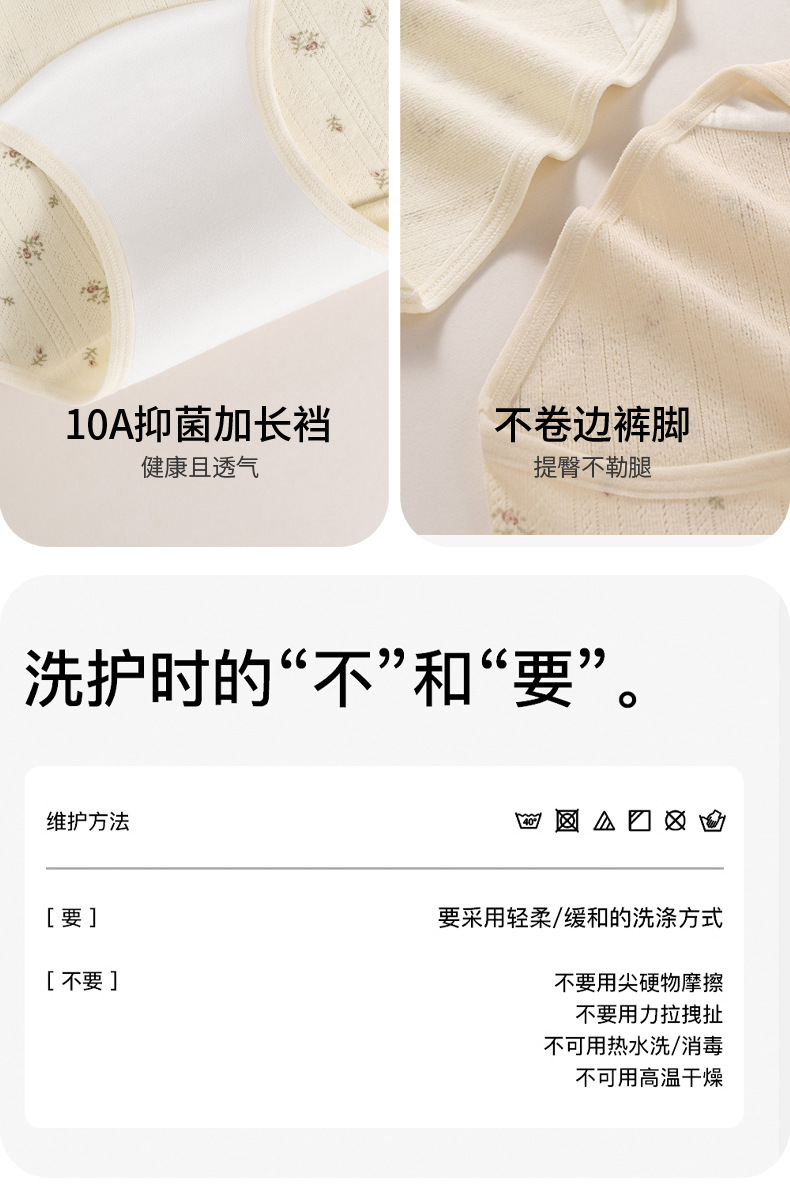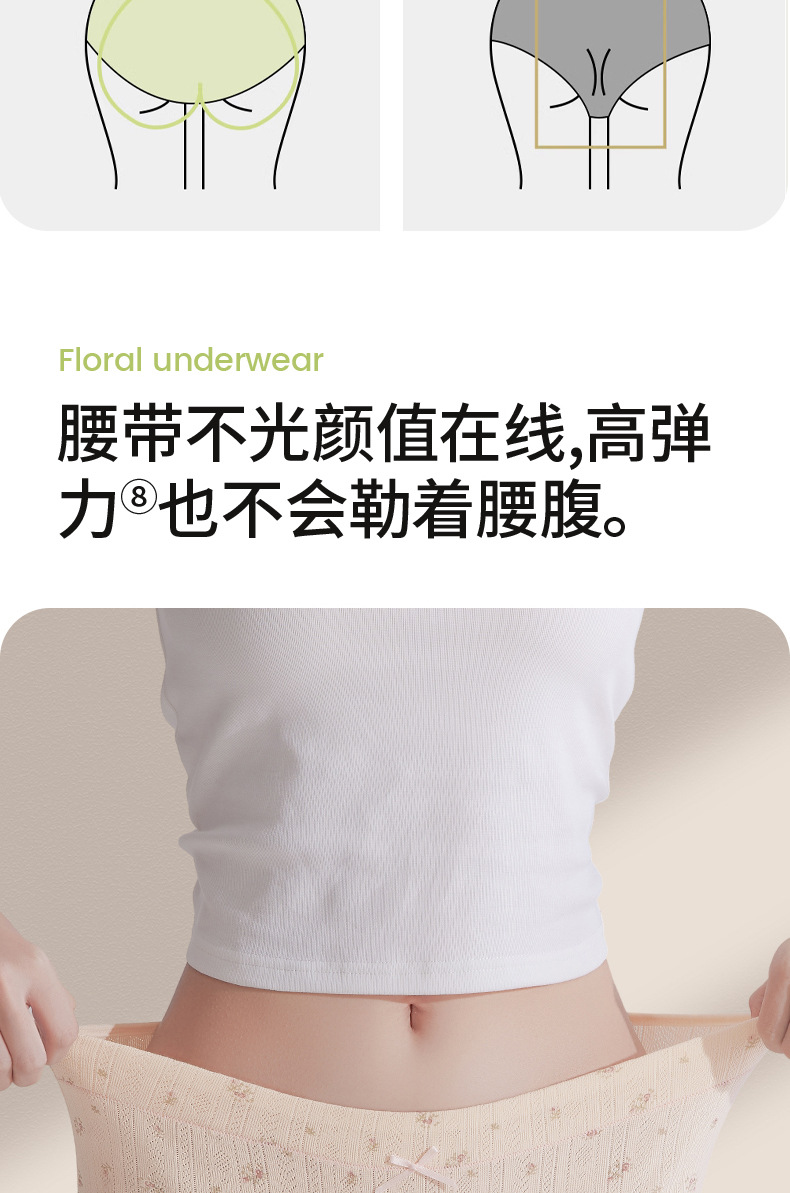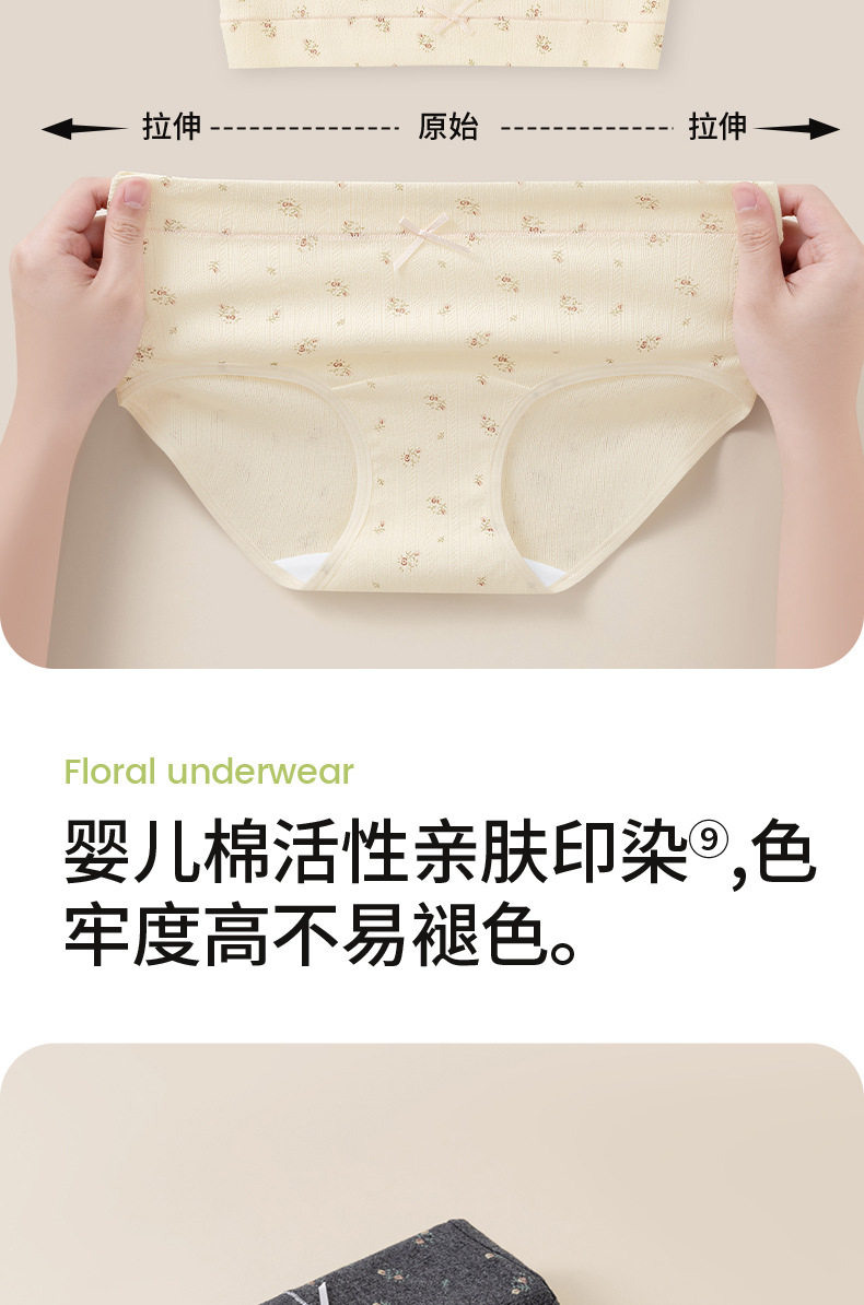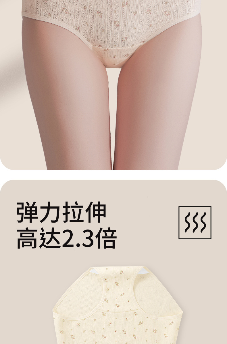 Ropa interior de entrepierna larga "Cream Flower", ropa interior de algodón para niñas, entrepierna antibacteriana, cintura media, nueva ropa interior de mujer sin costuras