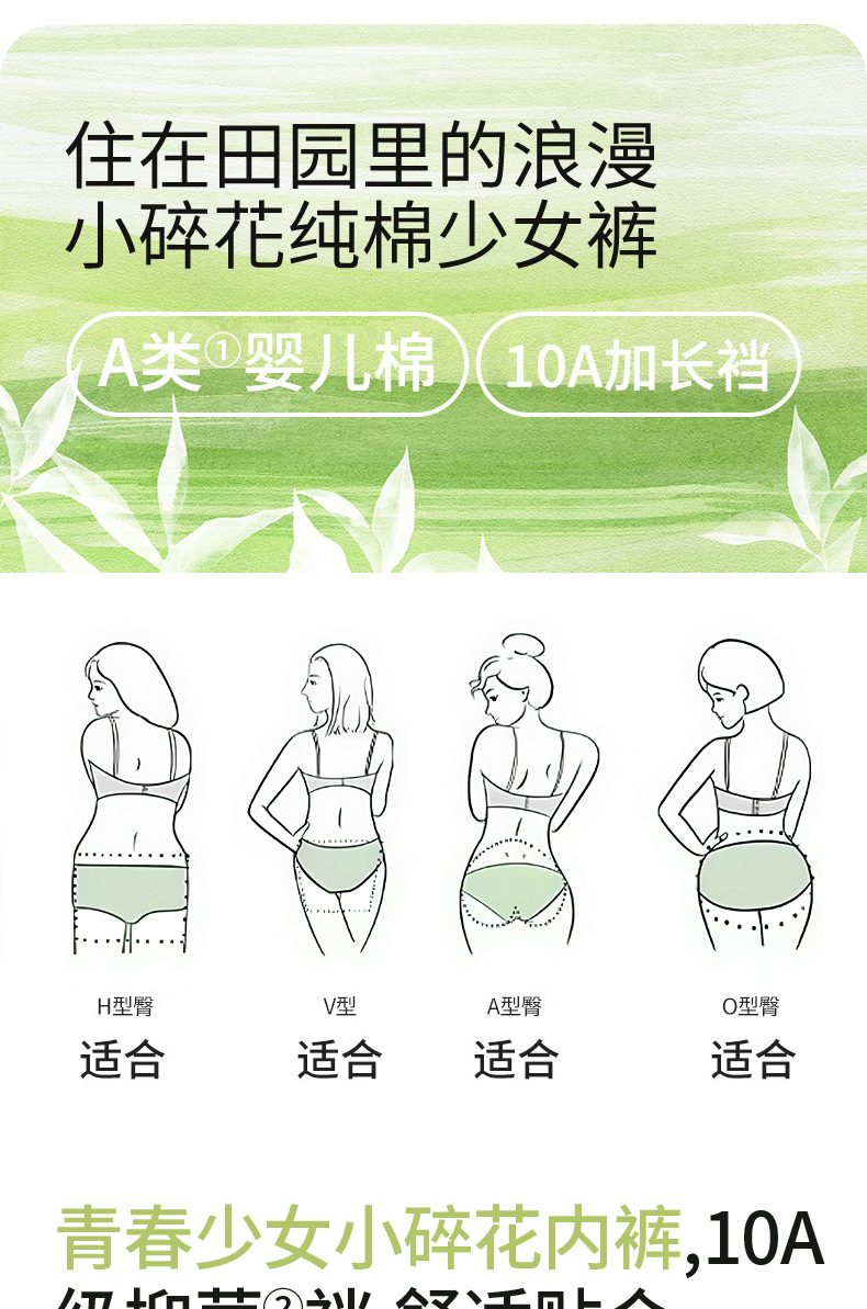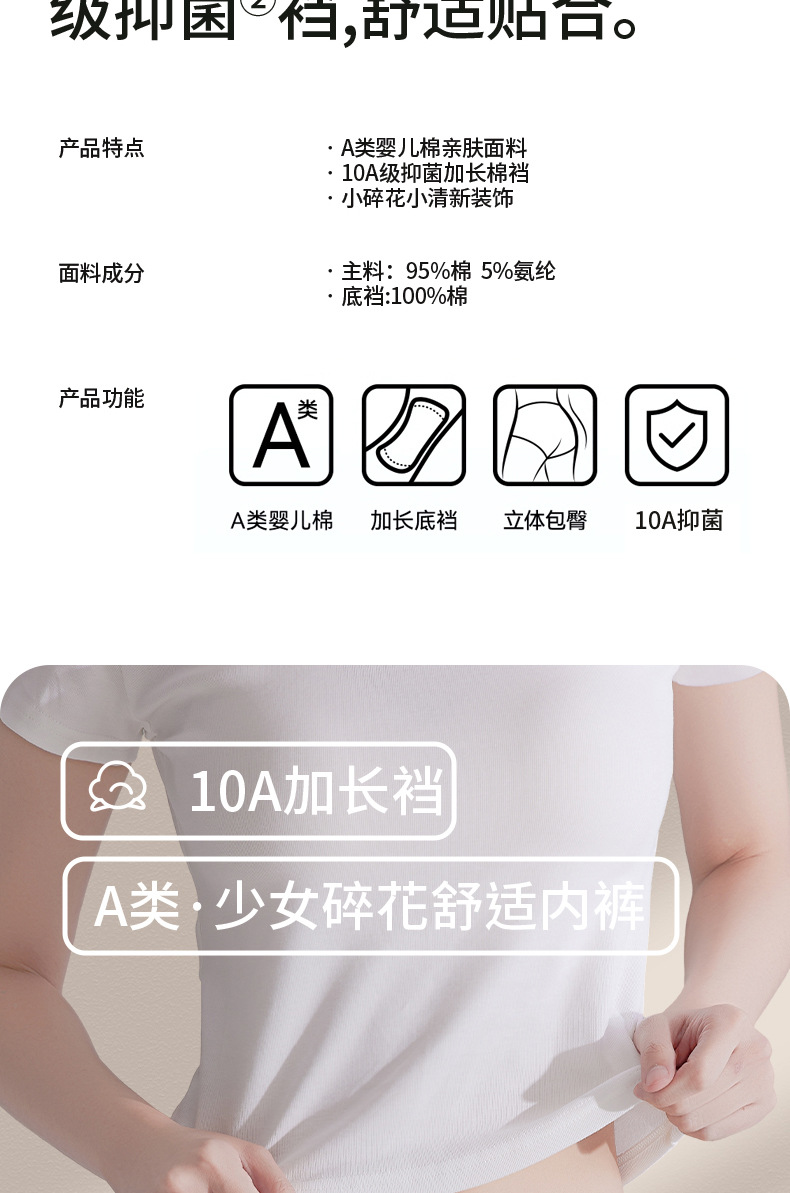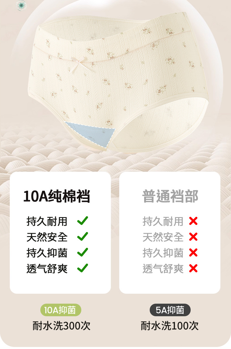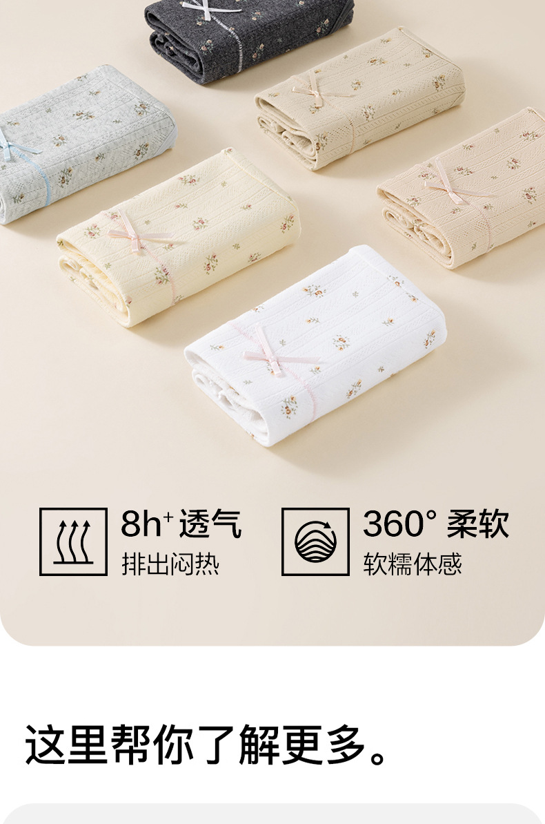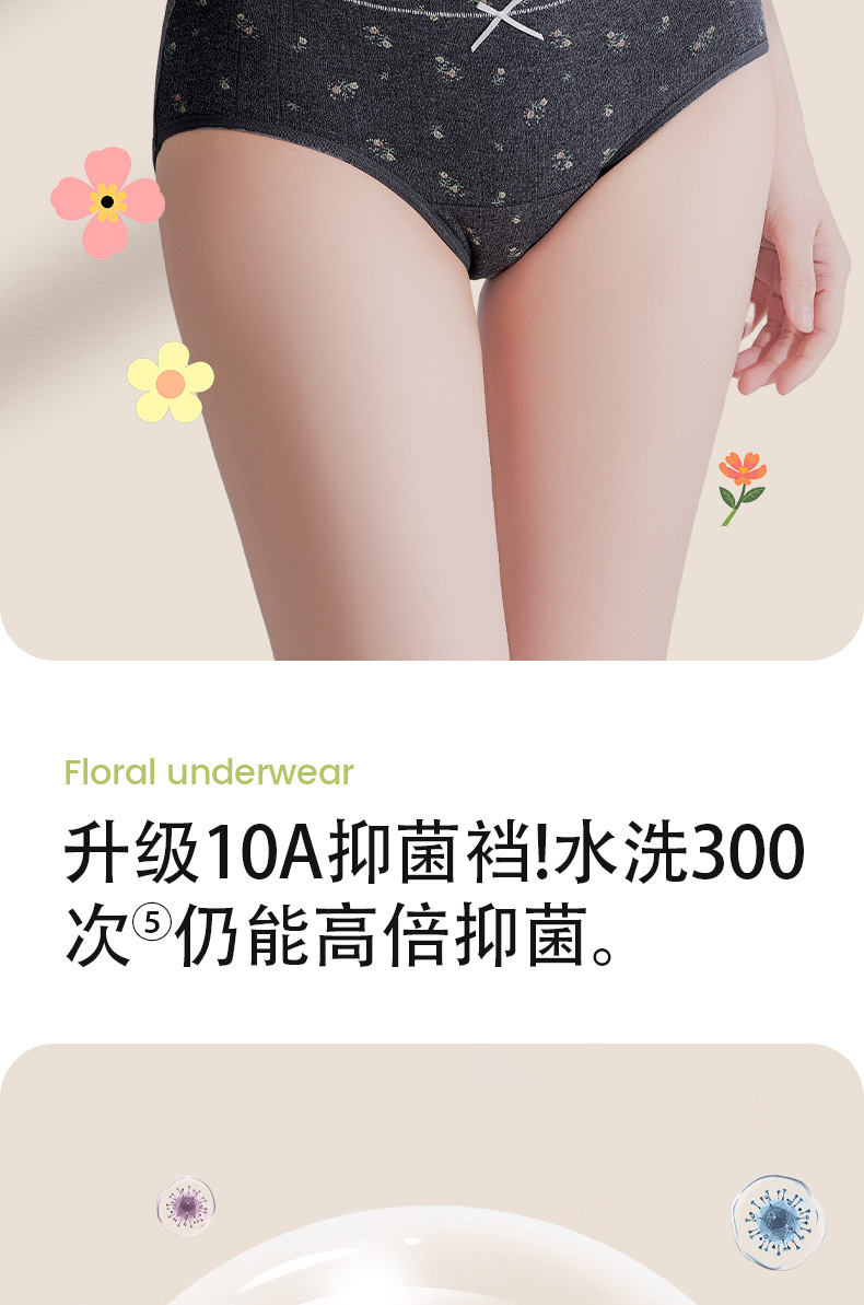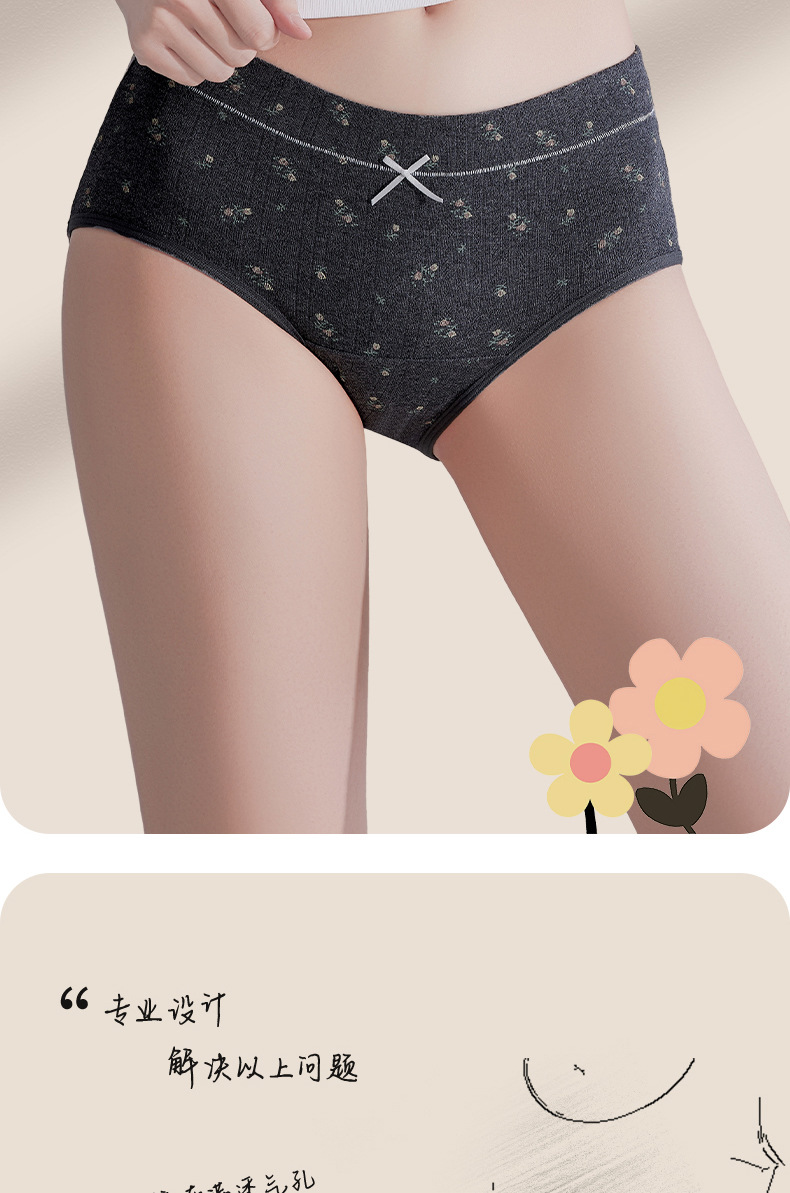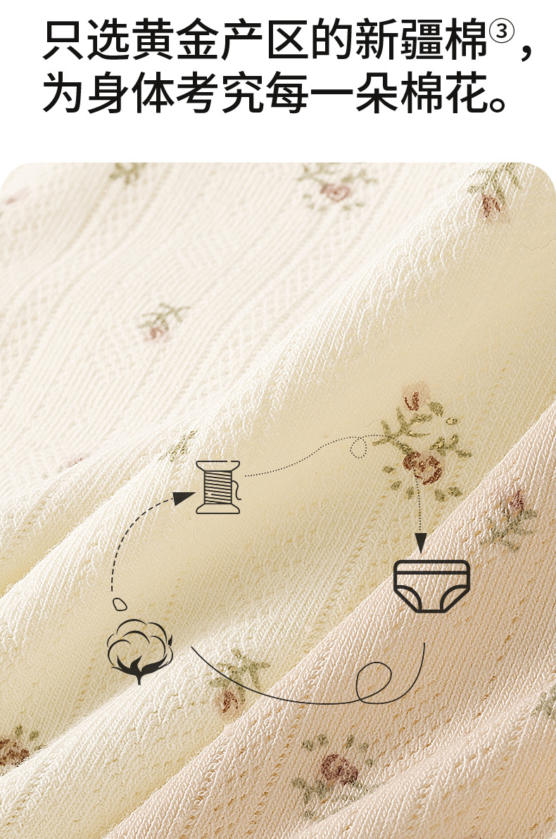 Ropa interior de entrepierna larga "Cream Flower", ropa interior de algodón para niñas, entrepierna antibacteriana, cintura media, nueva ropa interior de mujer sin costuras