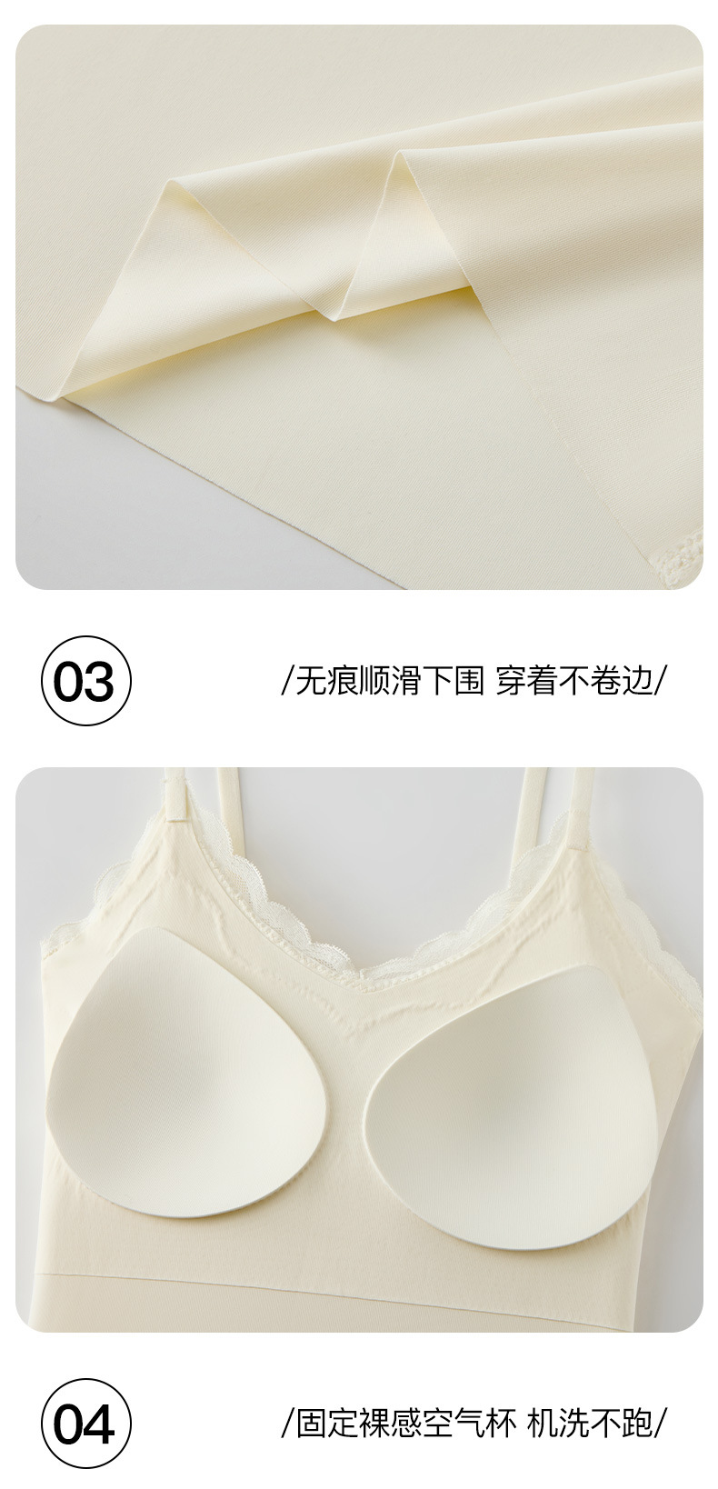 Eslinga de espalda hermosa de encaje sin costuras de seda de hielo