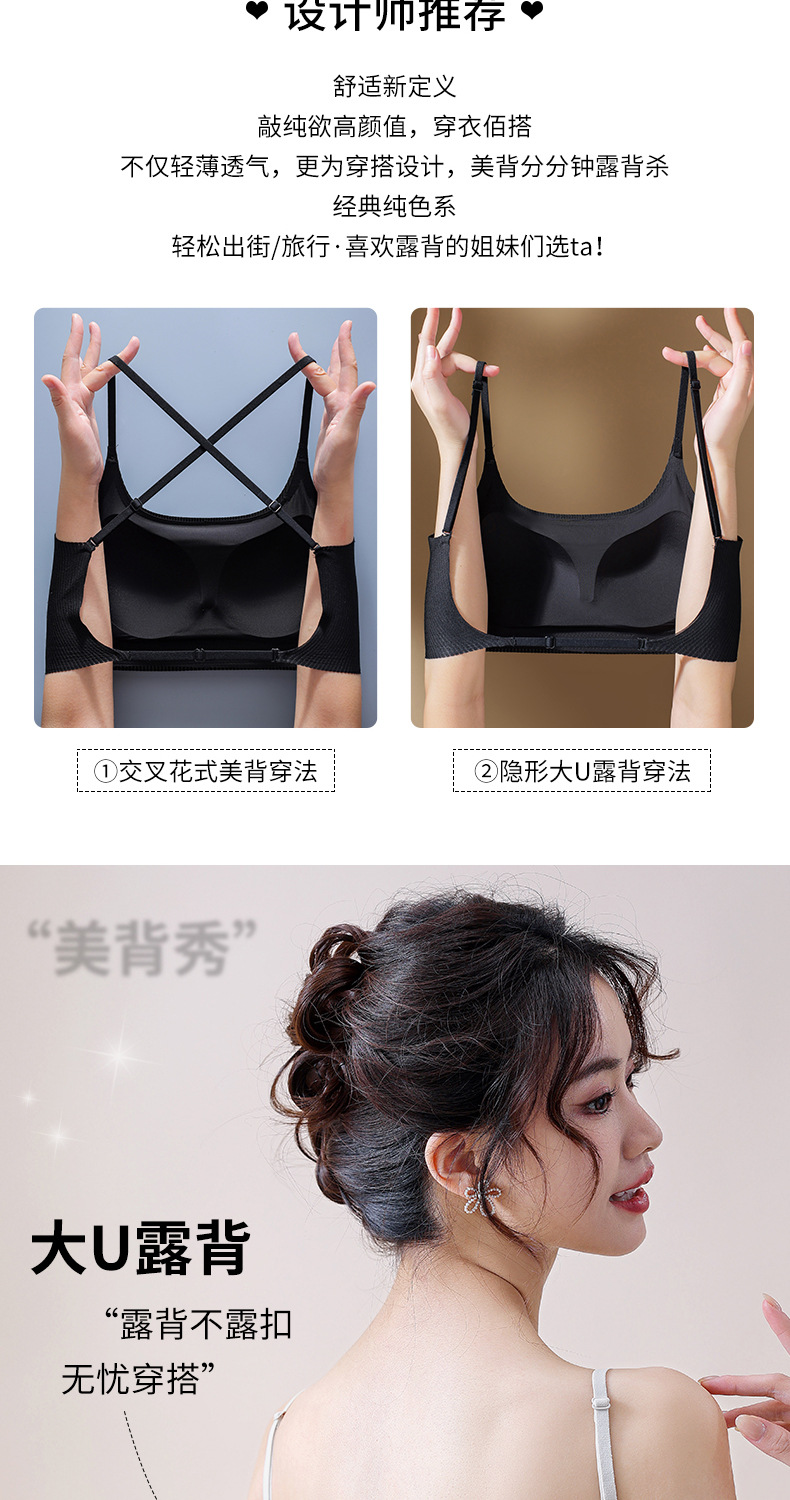 Hermoso sujetador de espalda muestra grandes y pequeños pechos reunidos sin anillo de acero ropa interior de niña ropa interior pecho pequeño sin taza vacía ropa interior reunida damas