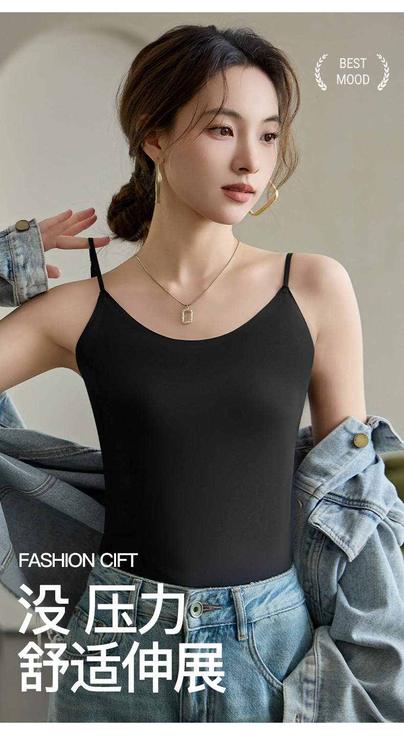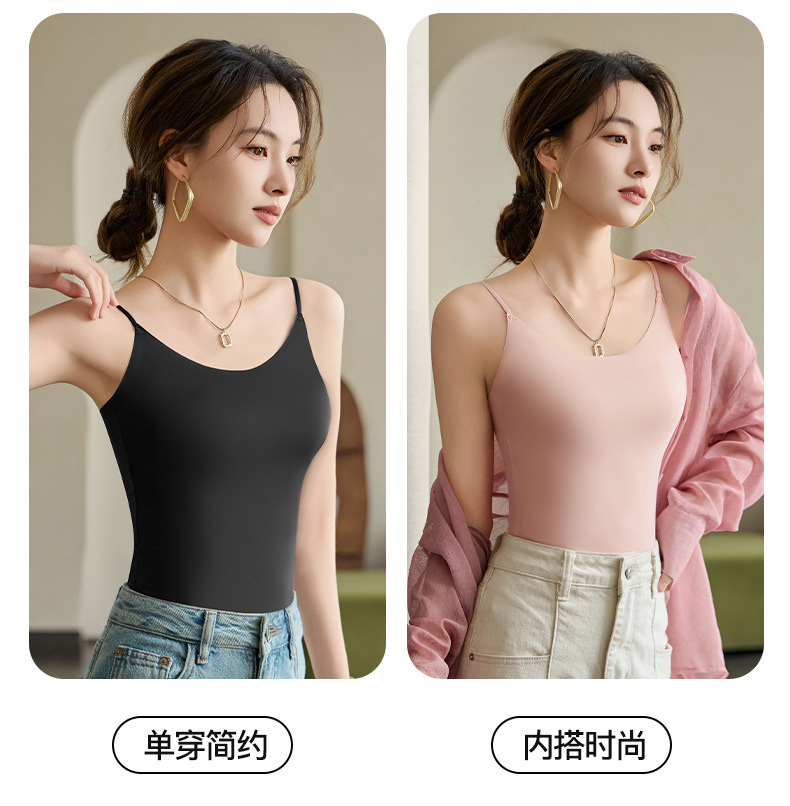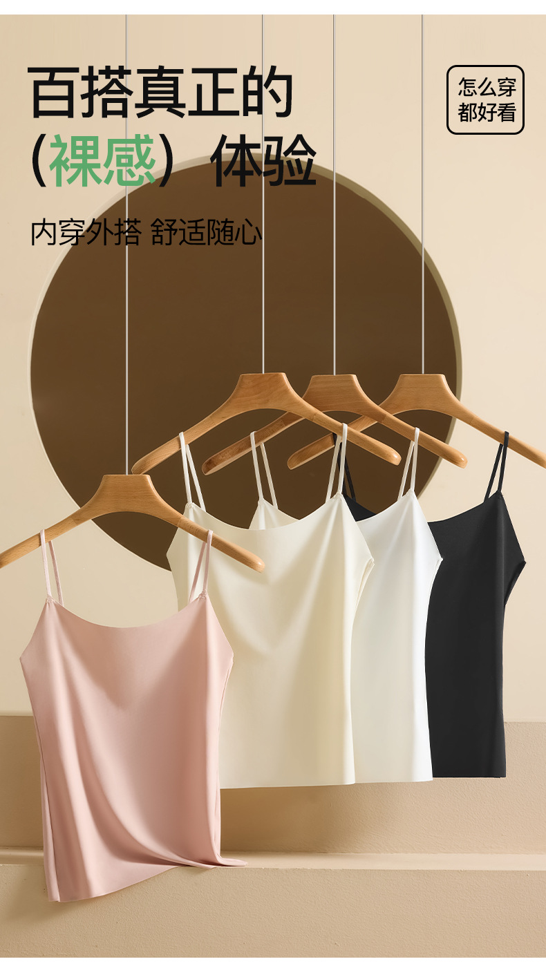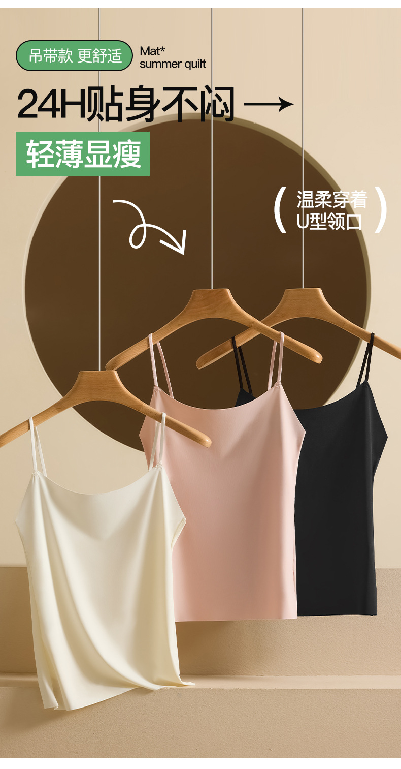 Nueva seda de hielo desnuda sin costuras hermosa camisola trasera para mujer, ropa interior y exterior, chaleco de fondo delgado de todo fósforo de primavera y verano para mujer