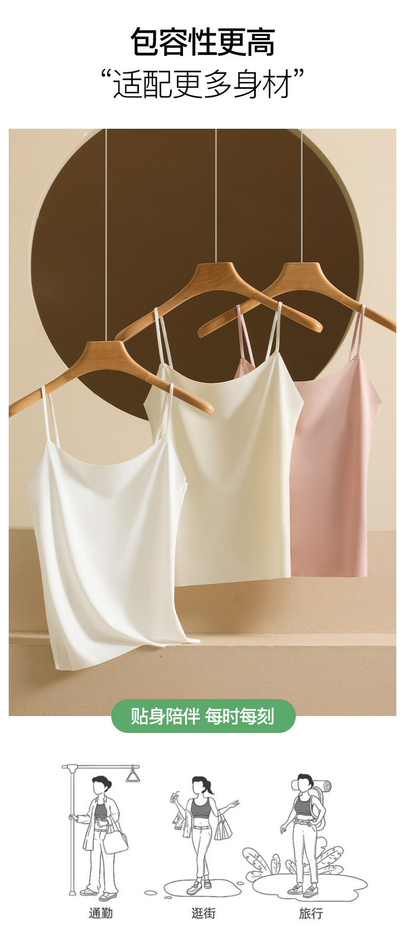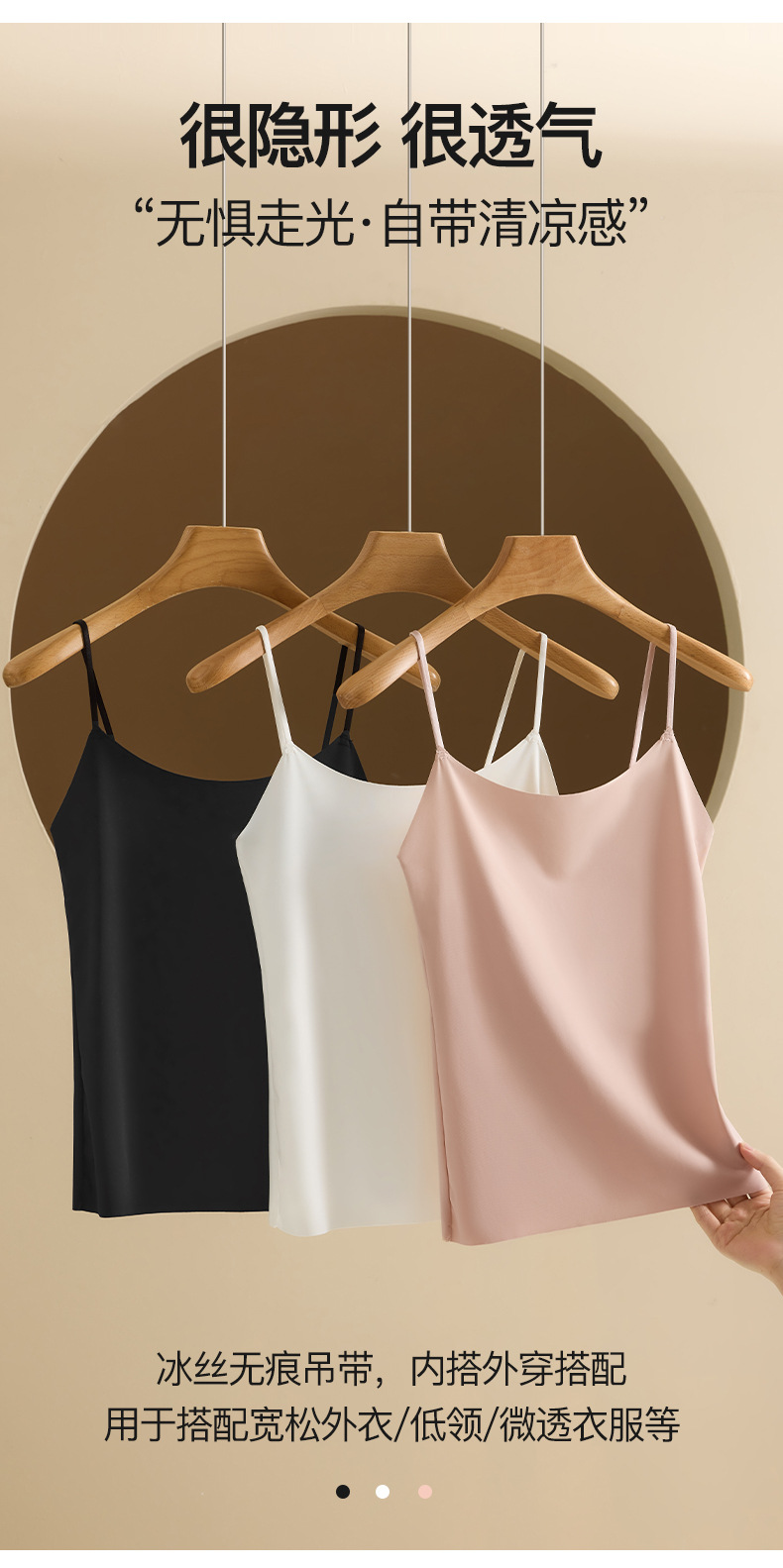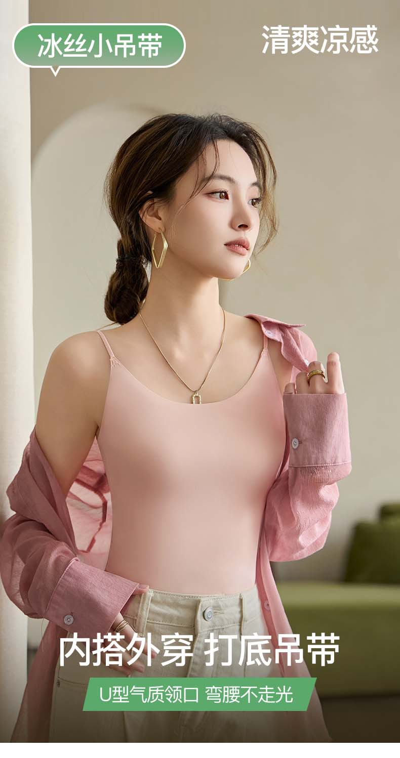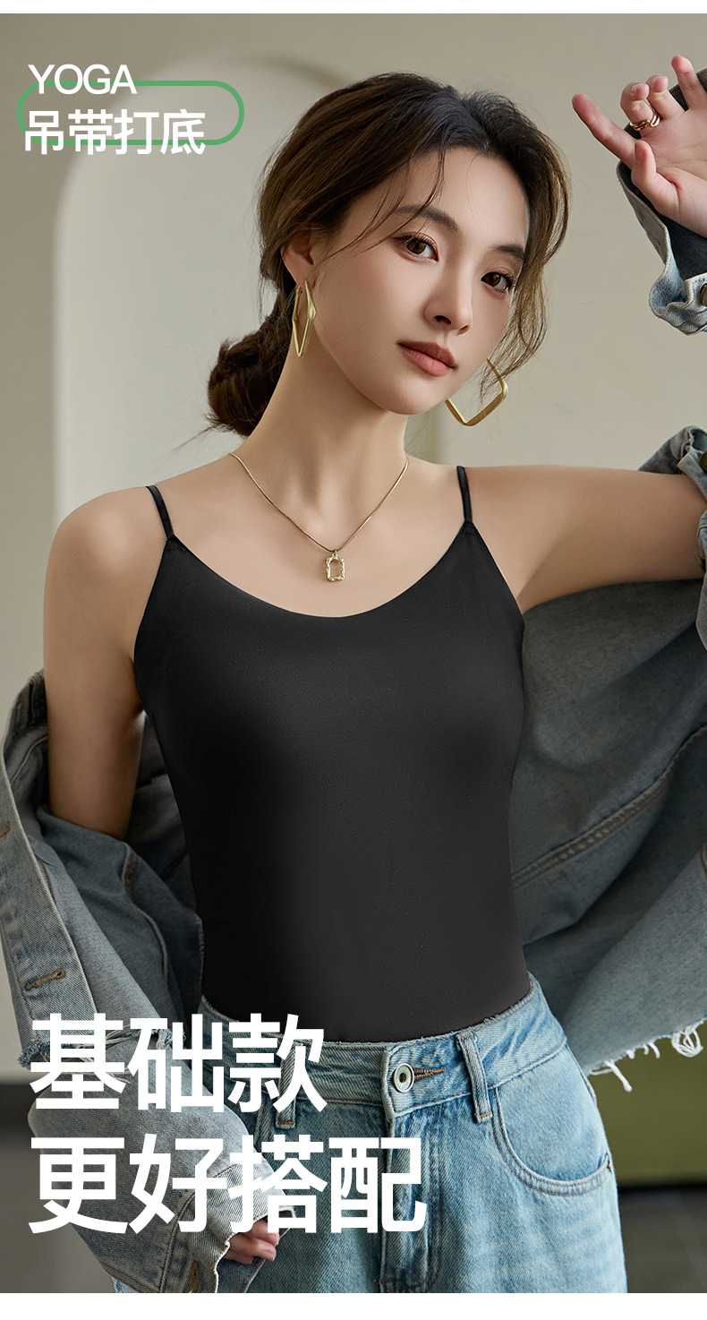 Nueva seda de hielo desnuda sin costuras hermosa camisola trasera para mujer, ropa interior y exterior, chaleco de fondo delgado de todo fósforo de primavera y verano para mujer