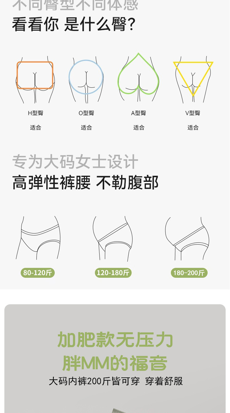 Gordo MM200 kg de gran tamaño Algodón puro 7A Algodón para bebés Clase A Algodón Plus Plus Grasa Ropa interior de algodón puro refrescante