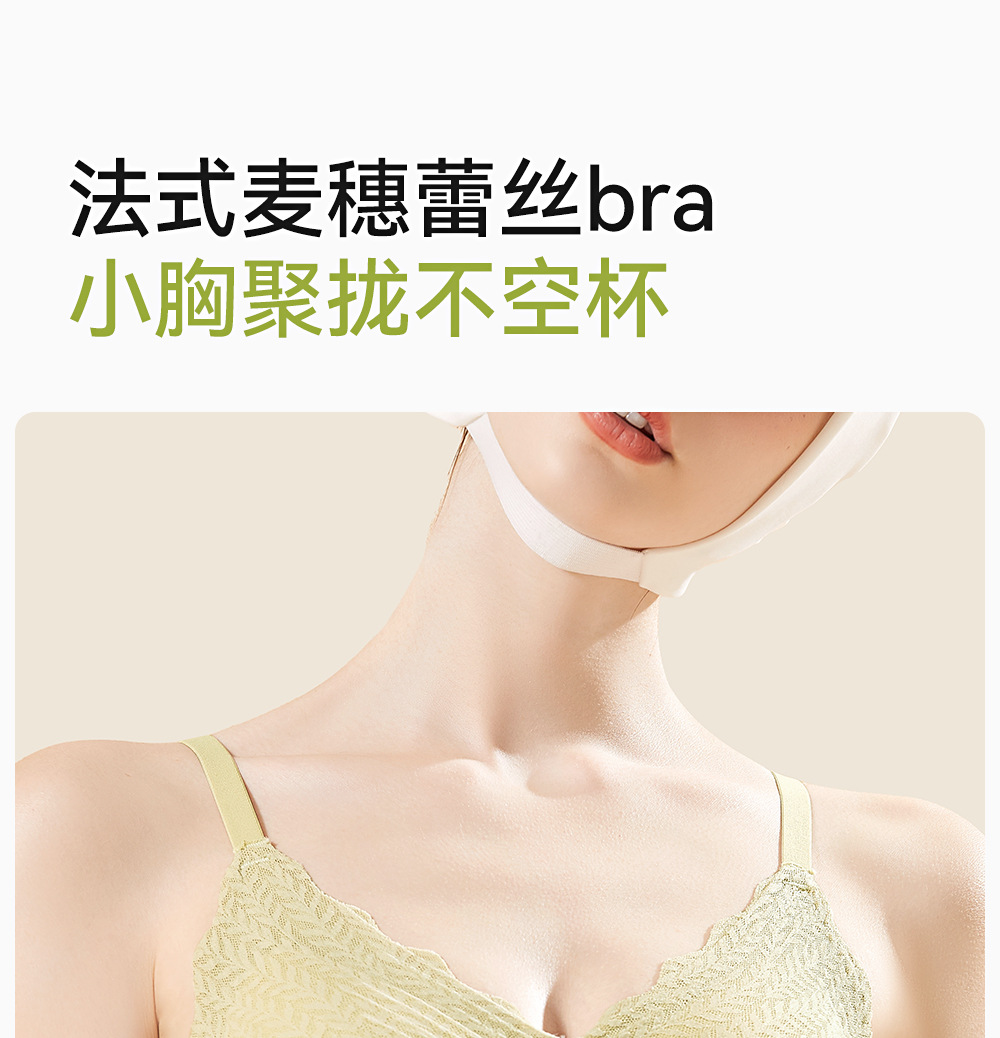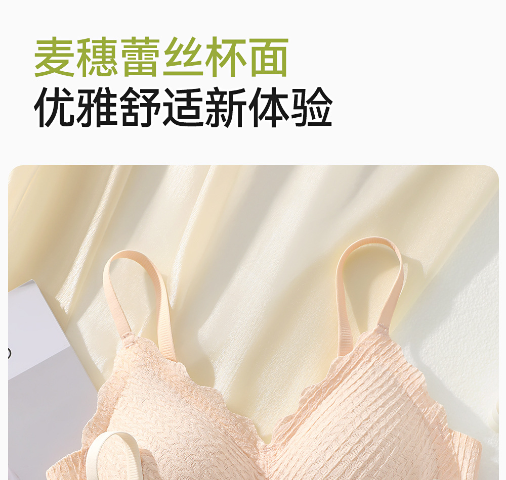 Ropa interior para mujeres, pechos pequeños, espigas de trigo de encaje grande, sin aros de acero, sin aros, senos secundarios, sin costuras, anti-flacidez, sujetador delgado