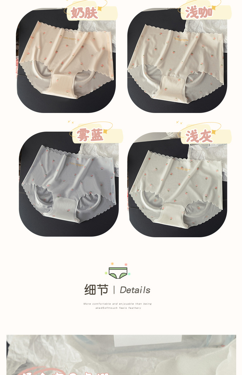 Ropa interior de seda de hielo para mujer, nuevo estilo de verano, algodón fino, entrepierna antibacteriana de grado 7a, pantalones cortos triangulares de niña cómodos y transpirables que no dejan marcas