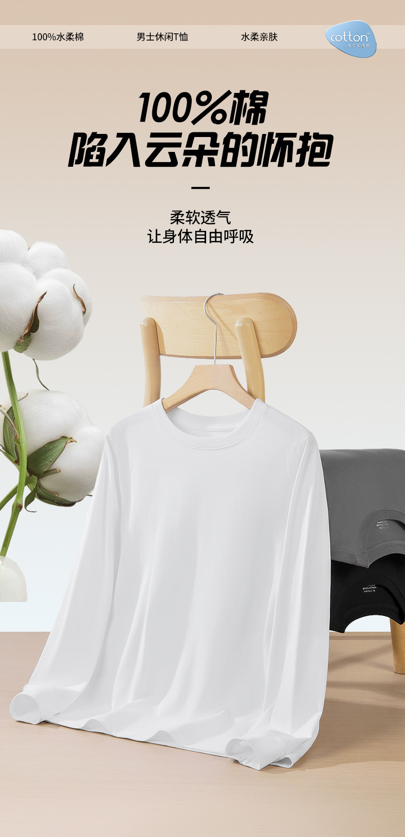 [Algodón suave de agua] Camiseta de manga larga para hombre de nuevo estilo, pijamas de algodón para primavera y verano, deportes y ocio, hogar de manga larga