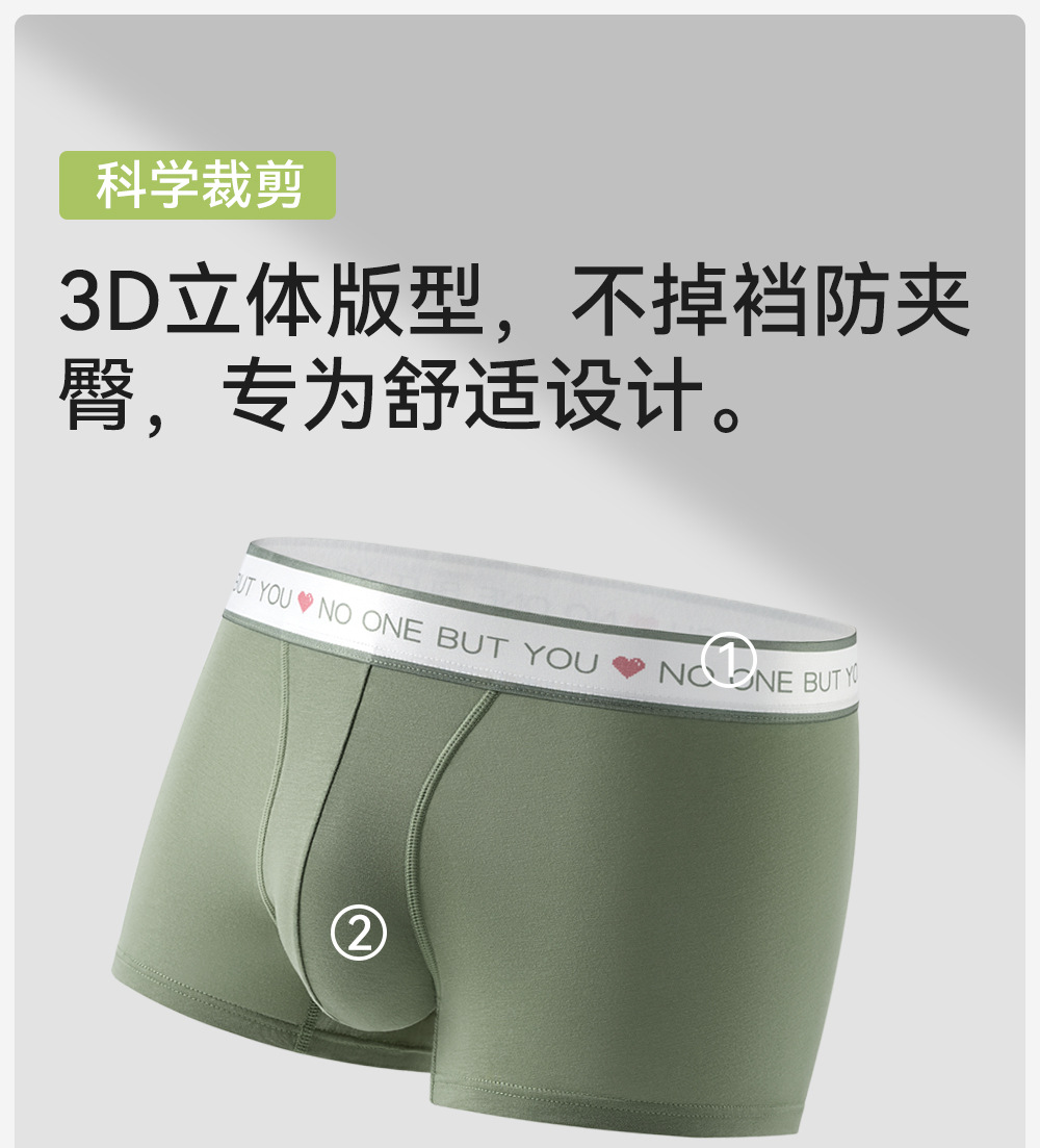Ropa interior masculina Modal 7A entrepierna antibacteriana pantalones cuadrangulares letras cintura media pantalones bóxer juveniles ropa interior masculina