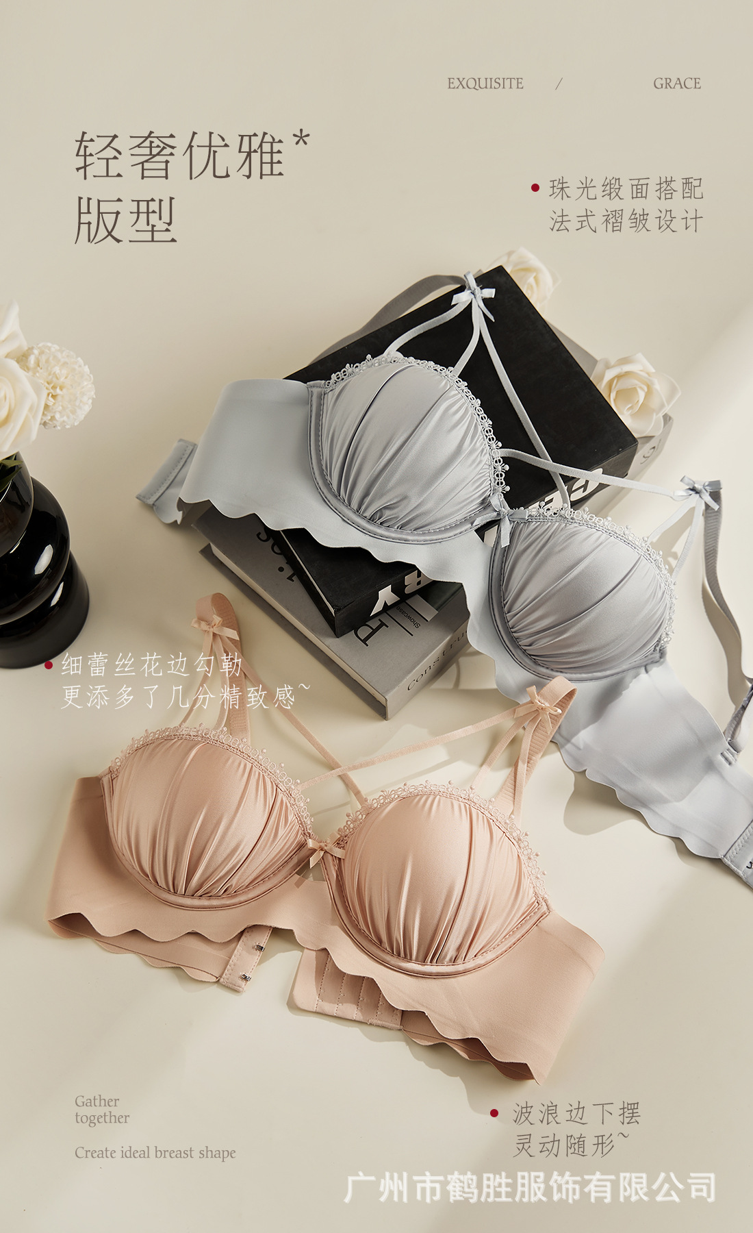 Nuevos productos para niñas, satén nacarado, traje de estilo explosivo en vivo, ropa interior de mujer, sujetador de pecho cómodo y sin costuras