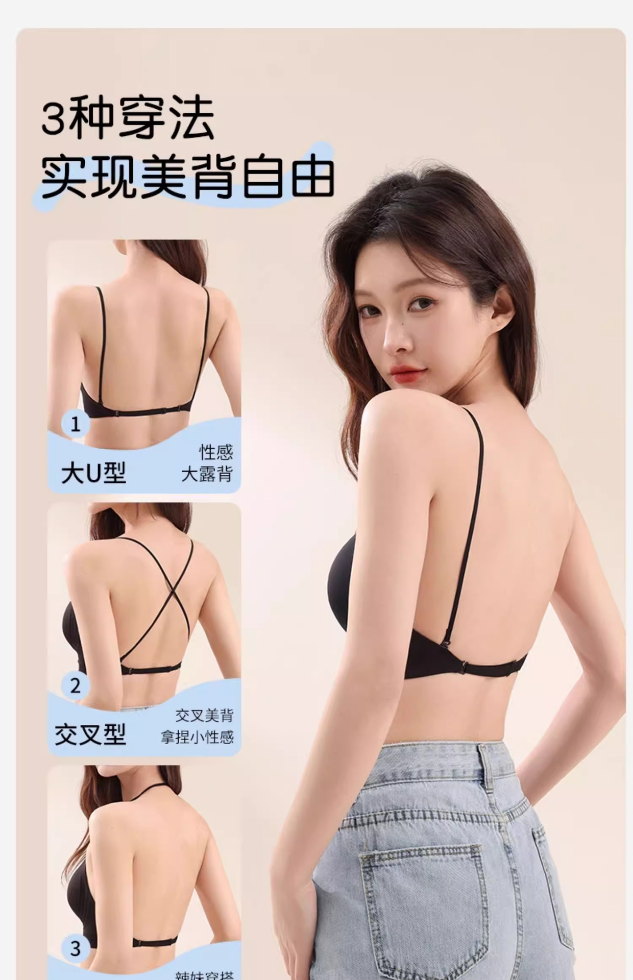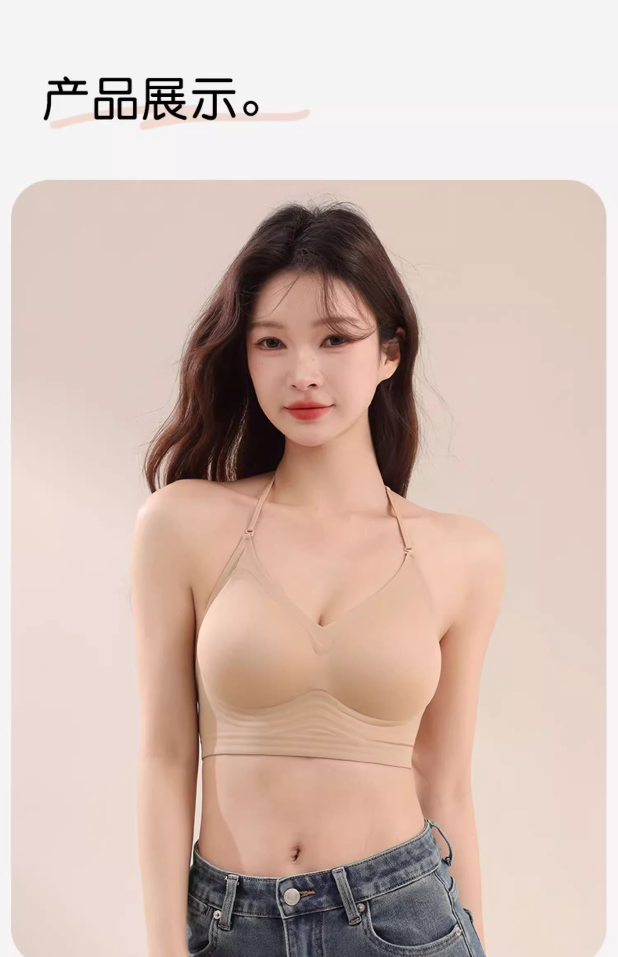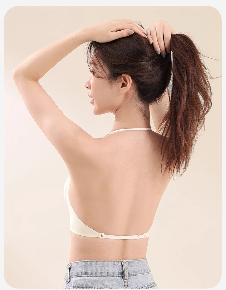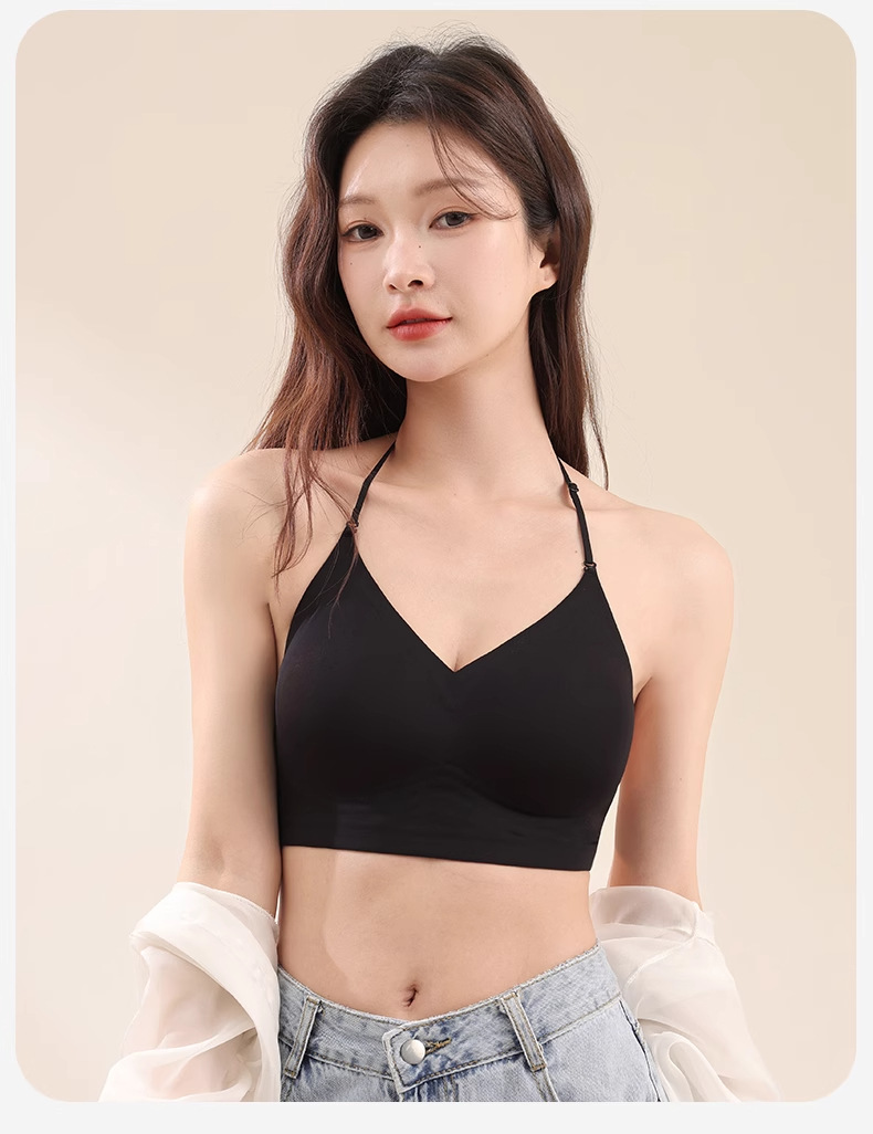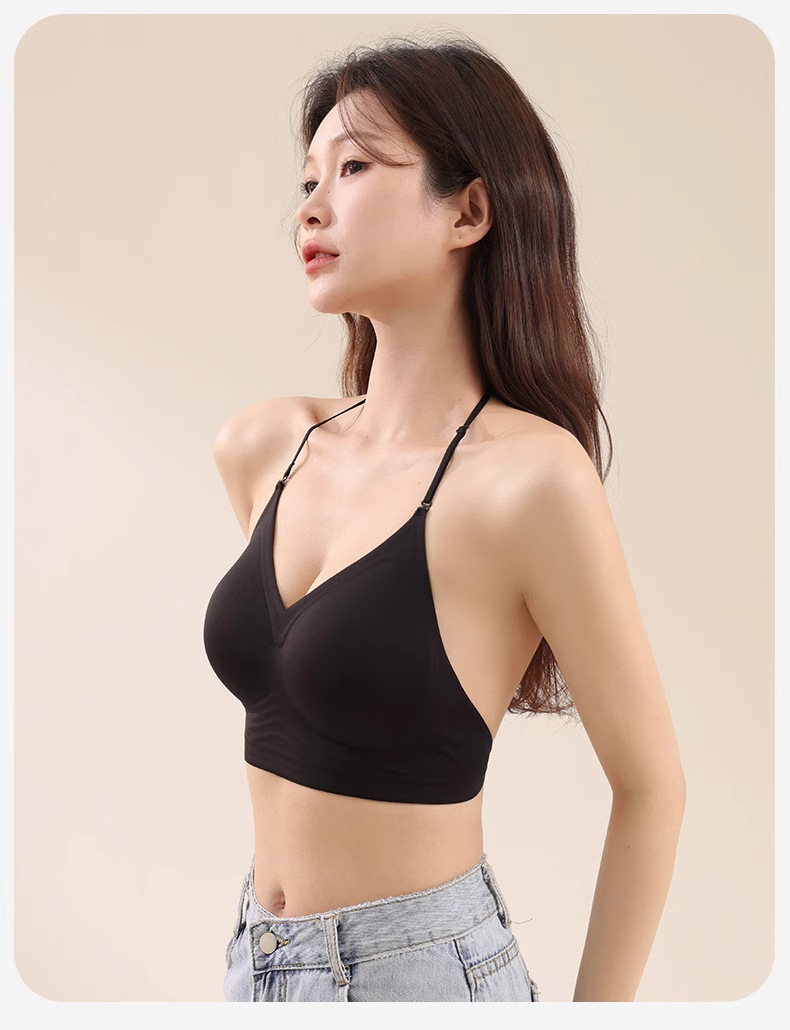 Chica caliente ropa interior de espalda hermosa mujer 2025 nuevo estilo caliente verano tirantes delgados cuerpo cruzado pecho pequeño recogido sujetador