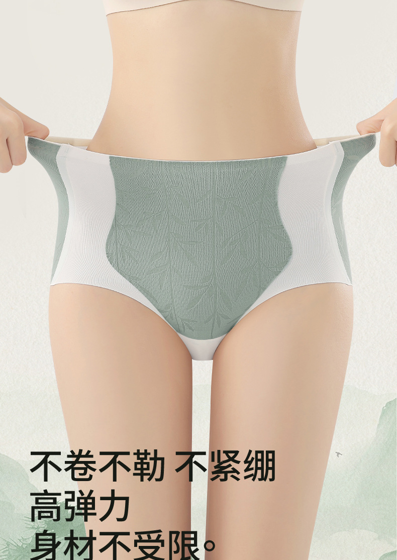Hielo de seda jacquard abdomen cintura alta glúteos calzoncillos sin costuras calzoncillos anti-pellizco glúteos antibacterianos entrepierna pantalones de vientre calzoncillos de mujer