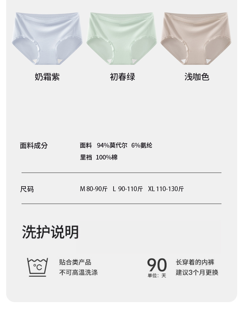 Bragas modales para niñas entrepierna de algodón puro 10A entrepierna antibacteriana cadera cintura media sin costuras calzoncillos de mujer absorbentes y transpirables