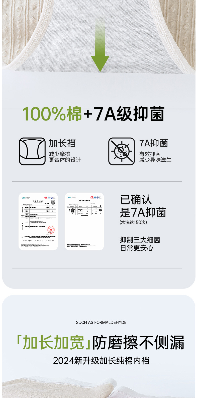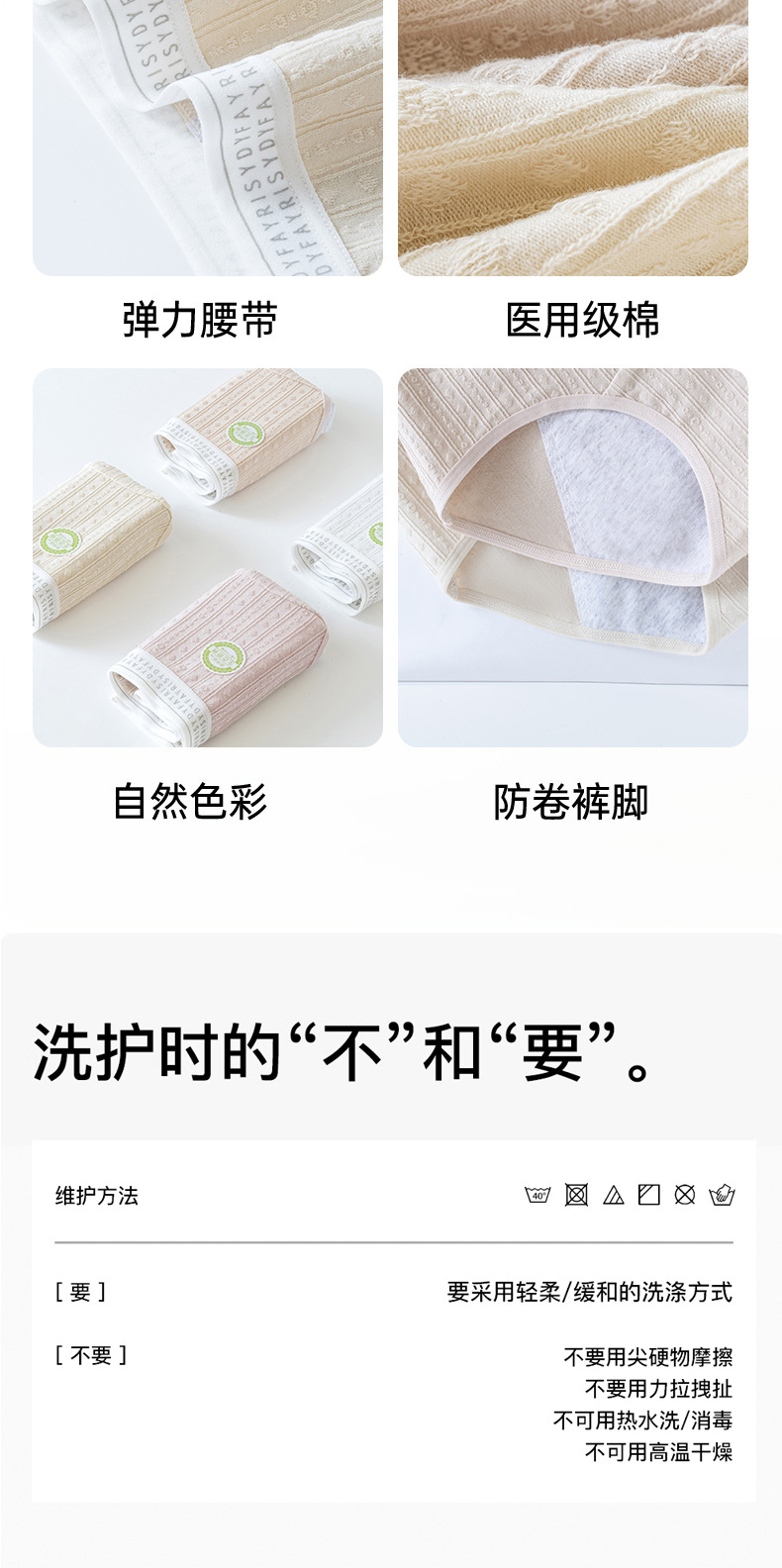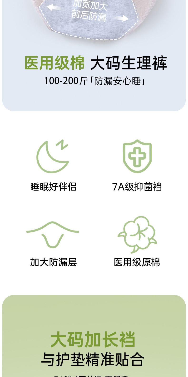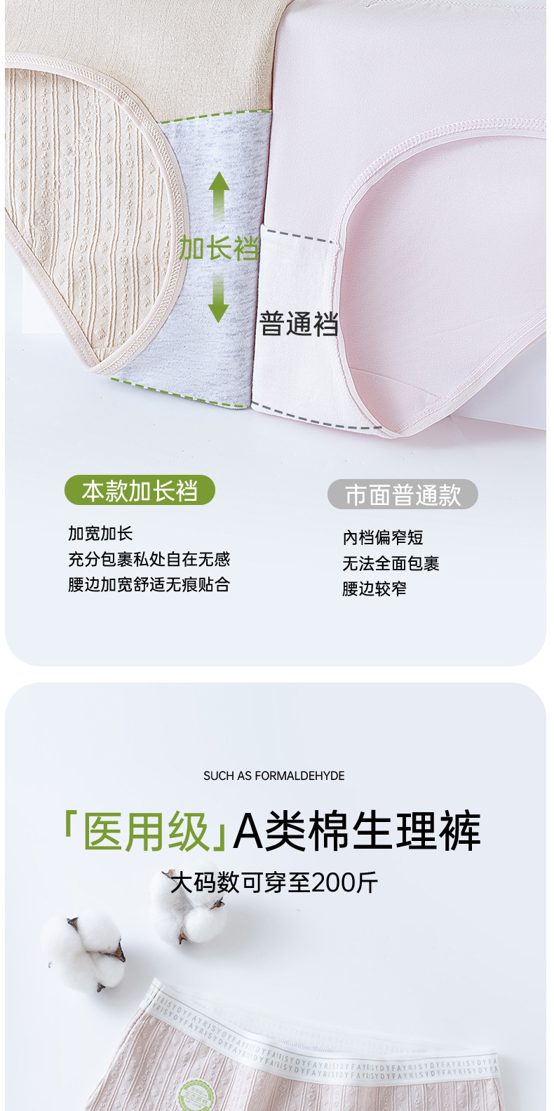 Grado médico Clase A algodón algodón cintura media talla grande 200 kg algodón puro largo grado 7A entrepierna antibacteriano jacquard pantalones fisiicos para niñas