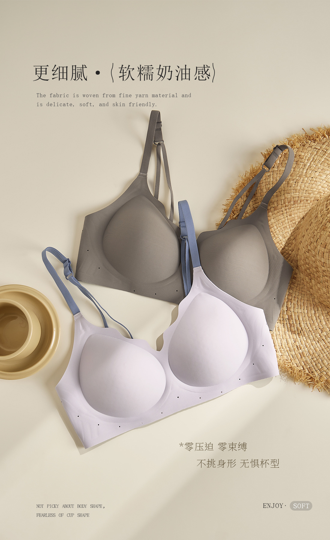 Venta directa de fábrica Comercio electrónico transfronterizo Sudeste de Asia Vietnam Tailandia Mujeres sin costuras Taza delgada Sujetador de recolección lateral de una pieza