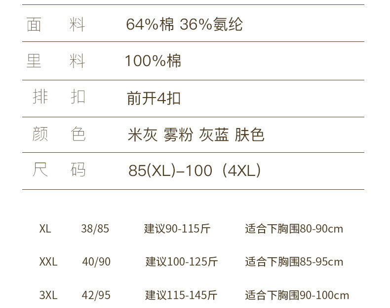 | Colores | Polvo de niebla [forro de algodón puro-1 pieza],Azul grisáceo [forro de algodón puro-1 pieza],Color de piel [forro de algodón puro-1 pieza],Gris de arroz [forro de algodón puro-1 pieza],Polvo de niebla [forro modal-1 pieza],Azul grisáceo [forro modal-1 pieza],Color de piel [forro modal-1 pieza],Gris de arroz [forro modal-1 pieza] |