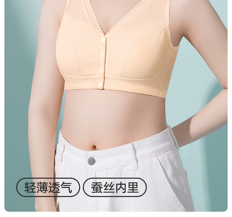 Ropa interior de madre sujetador con hebilla delantera femenina estilo fino de verano sin anillo de acero estilo chaleco mujeres de mediana edad y ancianas reunidas sujetador de seda de hielo