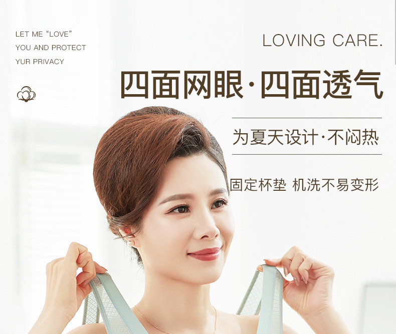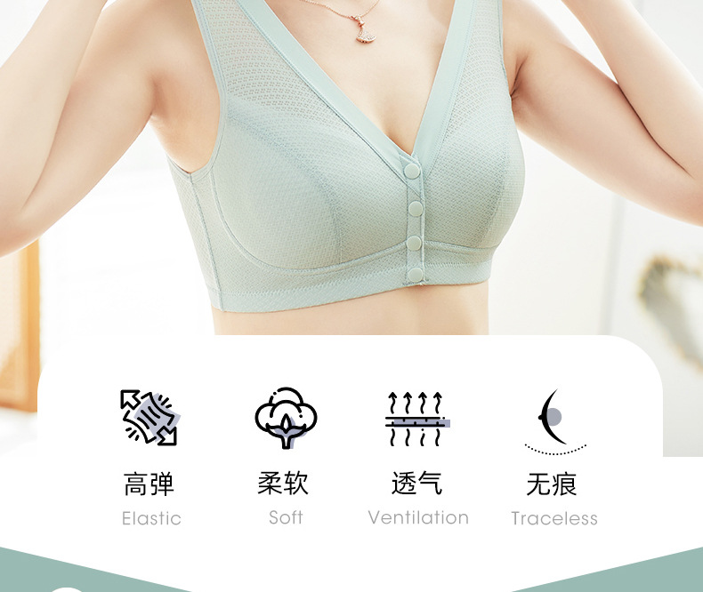 Ropa interior de mamá verano estilo delgado hebilla delantera sujetador sin anillo de acero forro de algodón puro estilo chaleco sin costuras sujetador de mediana edad y anciano de gran tamaño