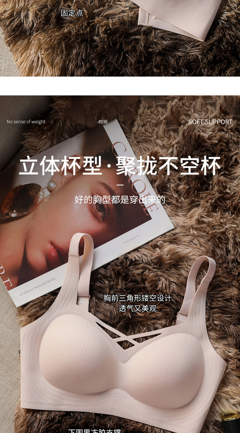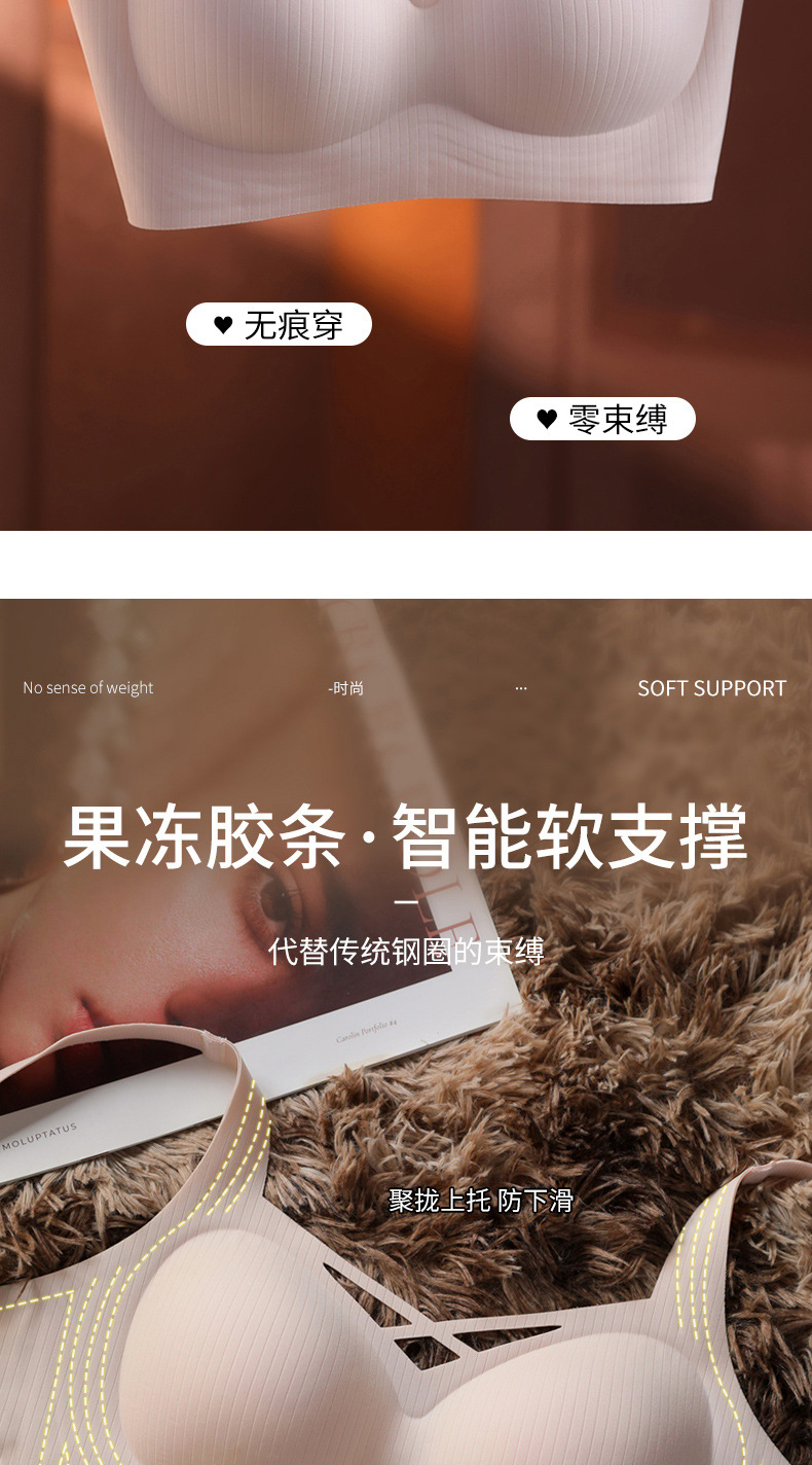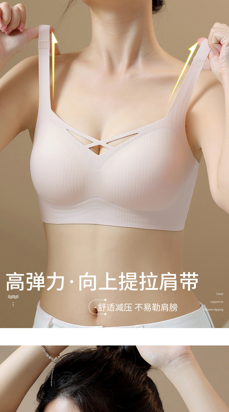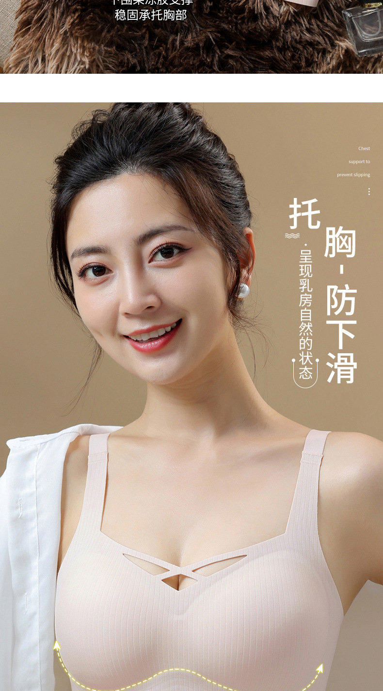 Ropa interior sin costuras para mujer, estilo fino de verano, pecho pequeño transpirable, recogido, soporte suave, anti-expansión, pecho secundario, anti-flacidez, sujetador