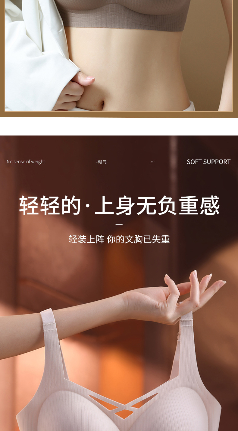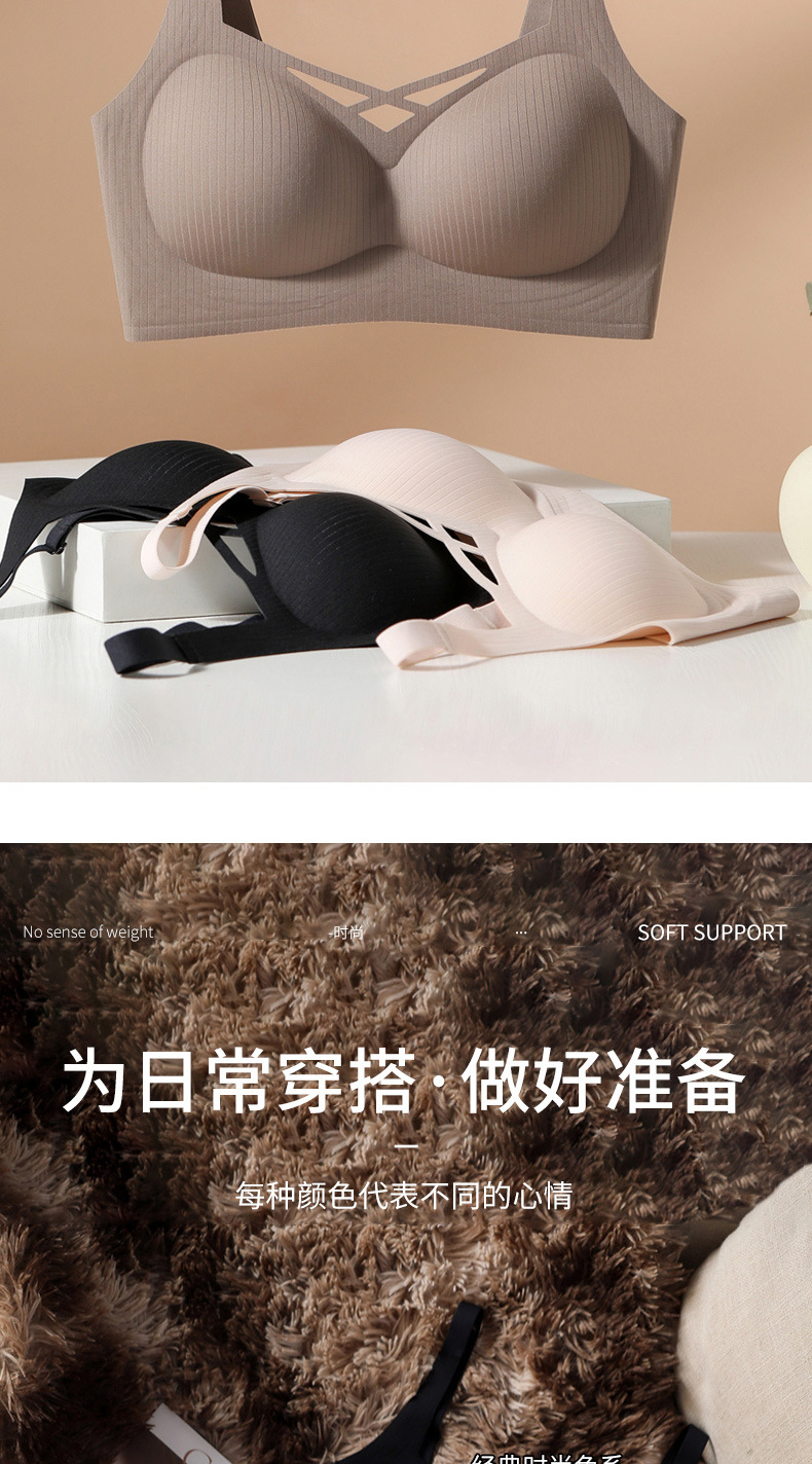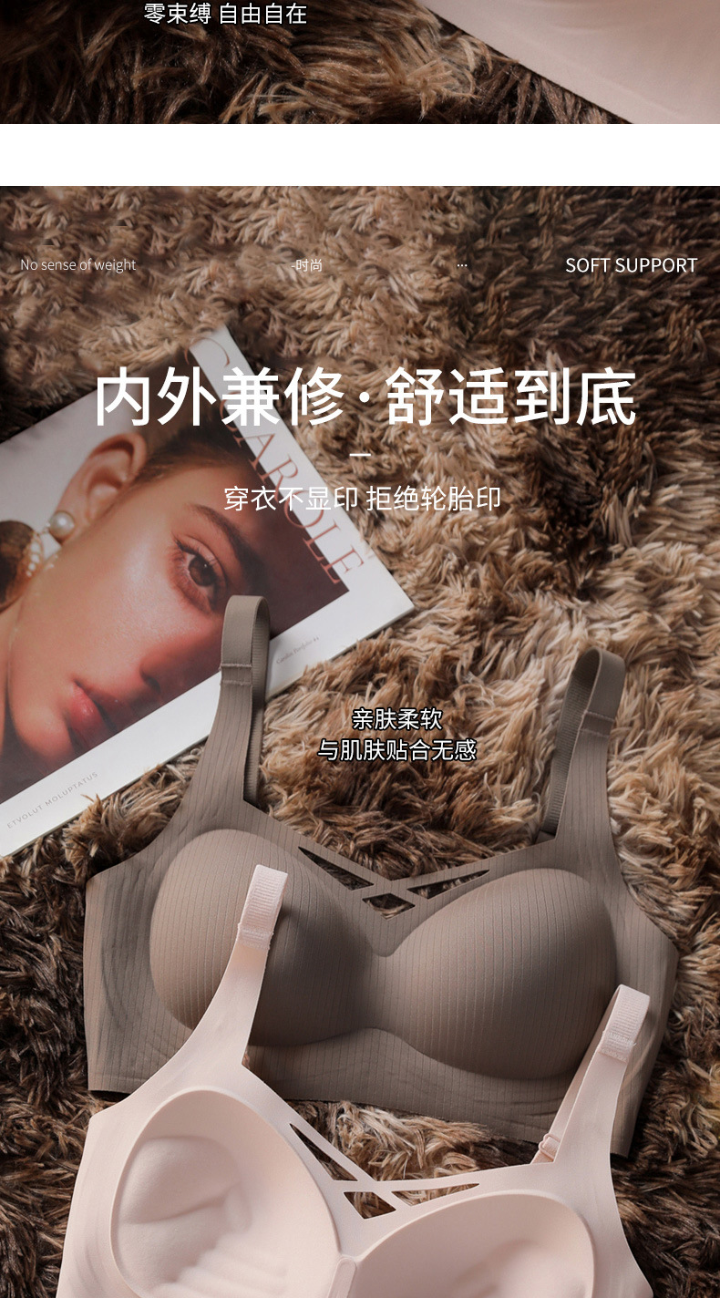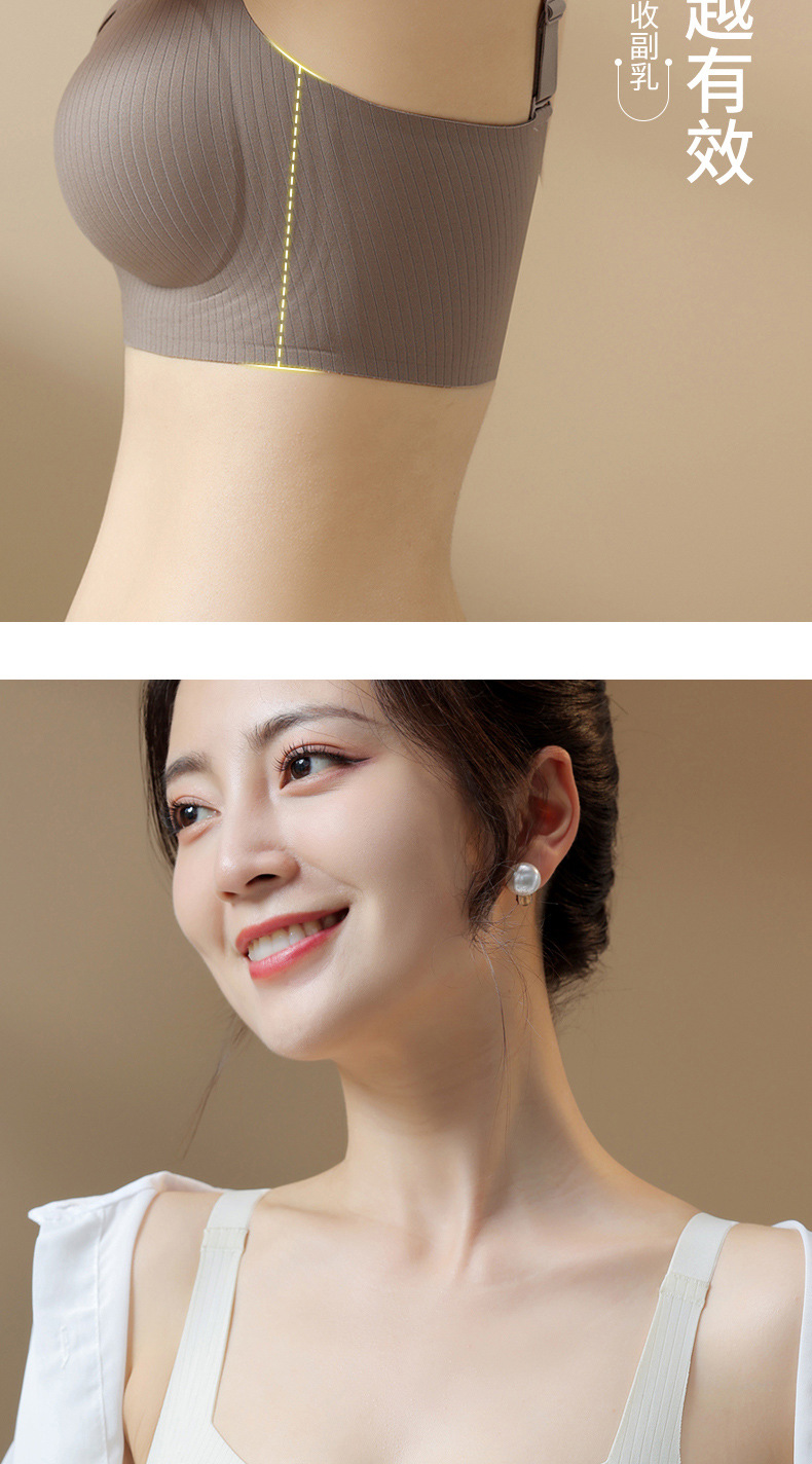 Ropa interior sin costuras para mujer, estilo fino de verano, pecho pequeño transpirable, recogido, soporte suave, anti-expansión, pecho secundario, anti-flacidez, sujetador