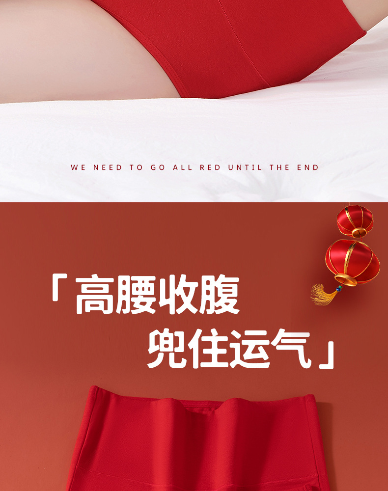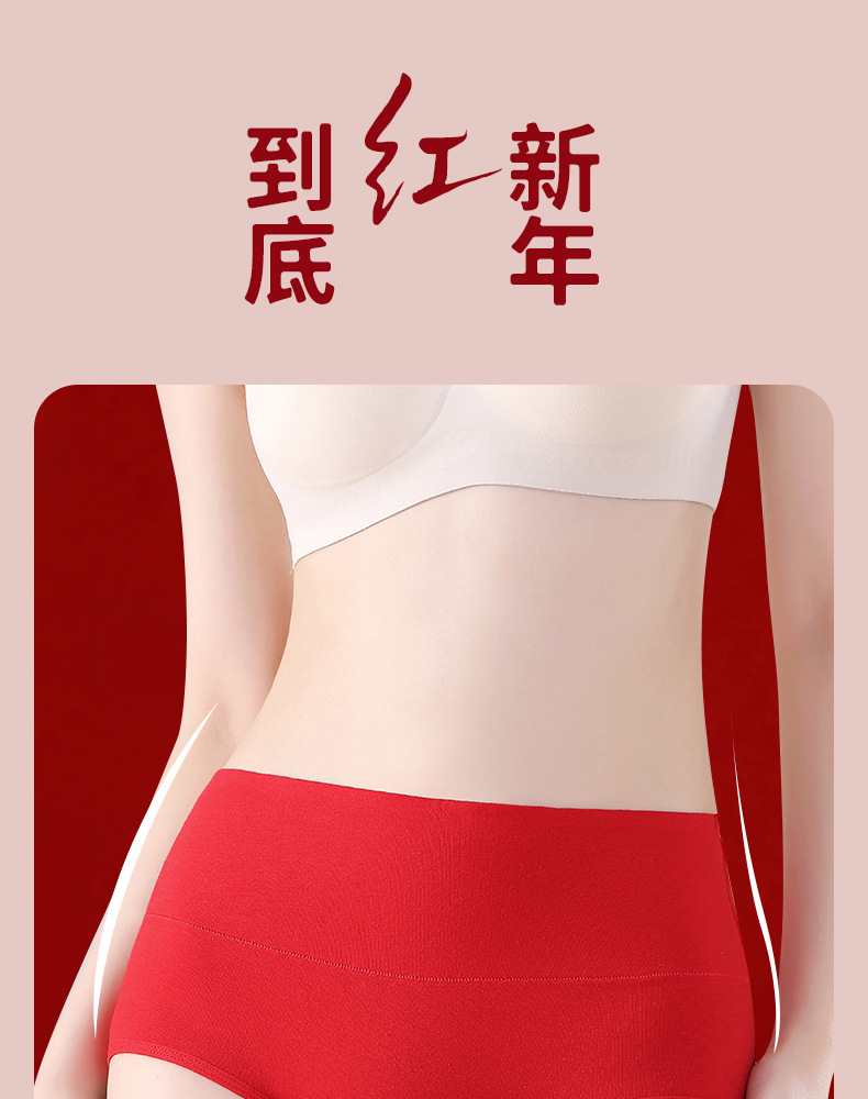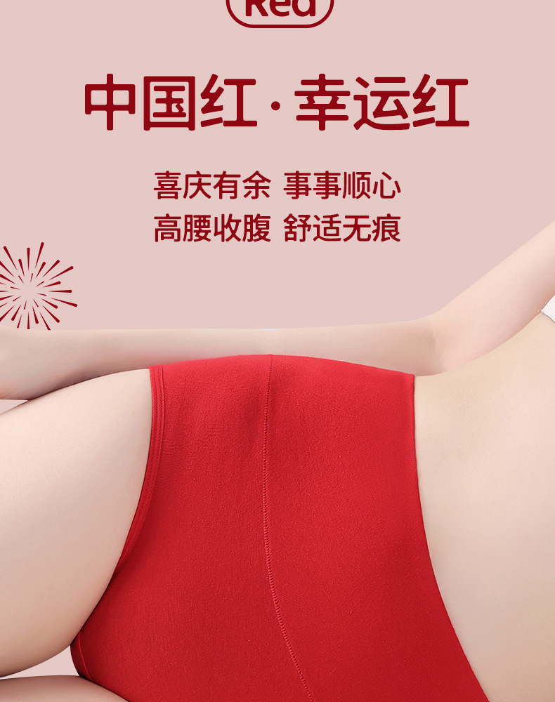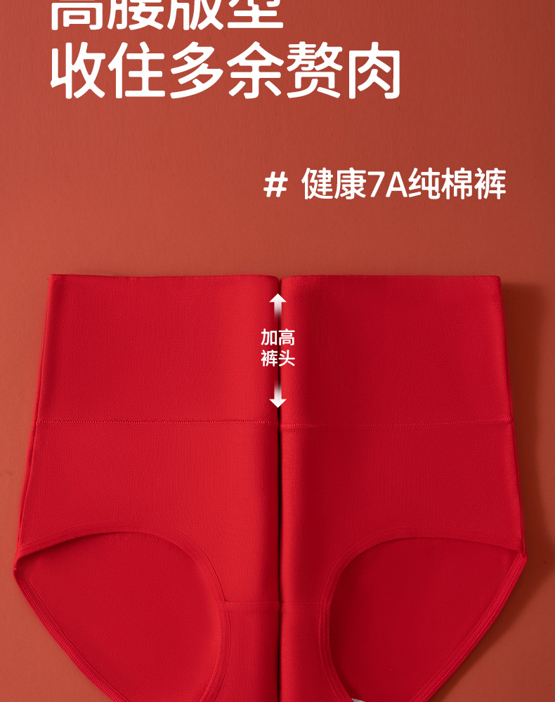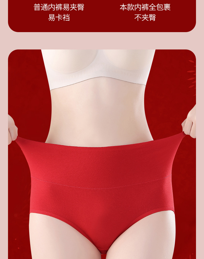 Ropa interior roja china 7A algodón puro antibacteriano año natal algodón cintura alta abdomen sin sujetar las caderas ropa interior de mujer de cintura alta de gran tamaño