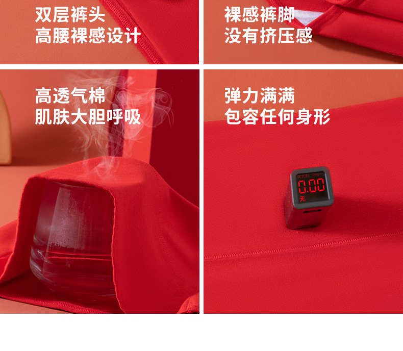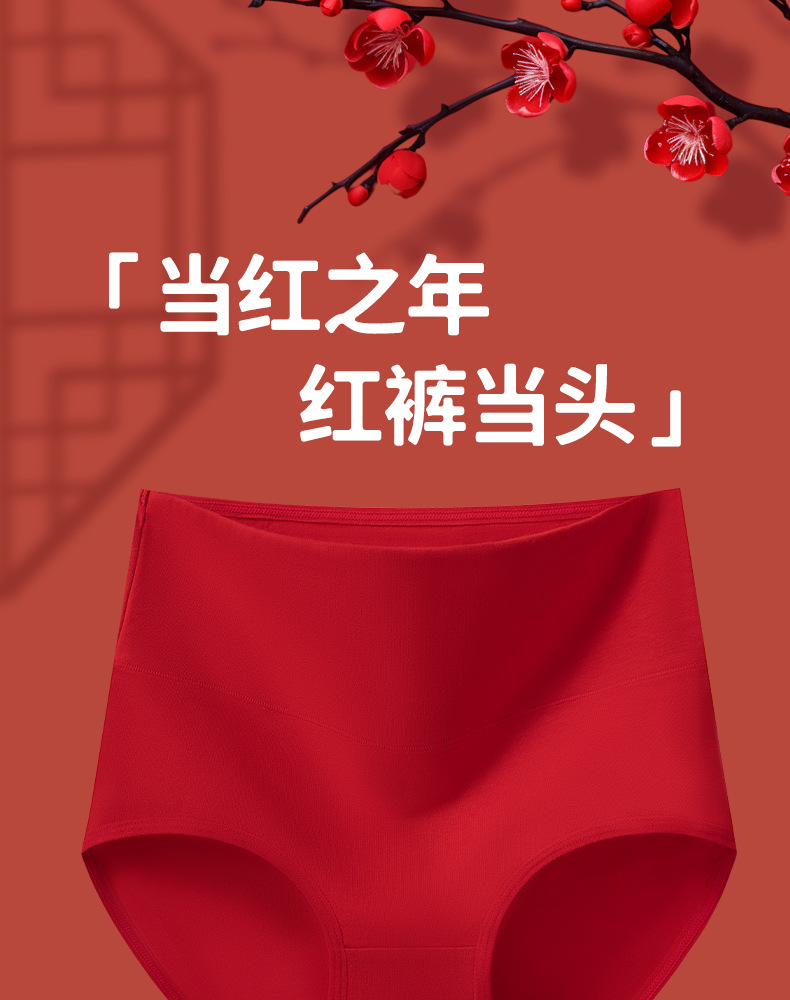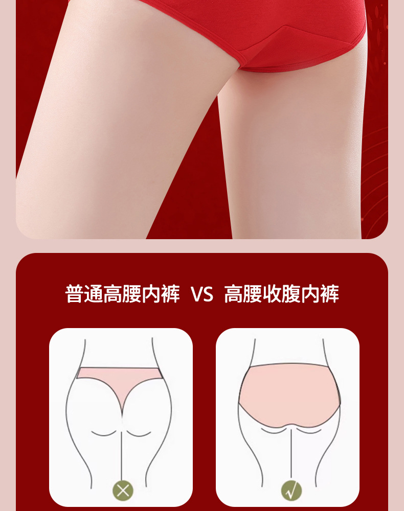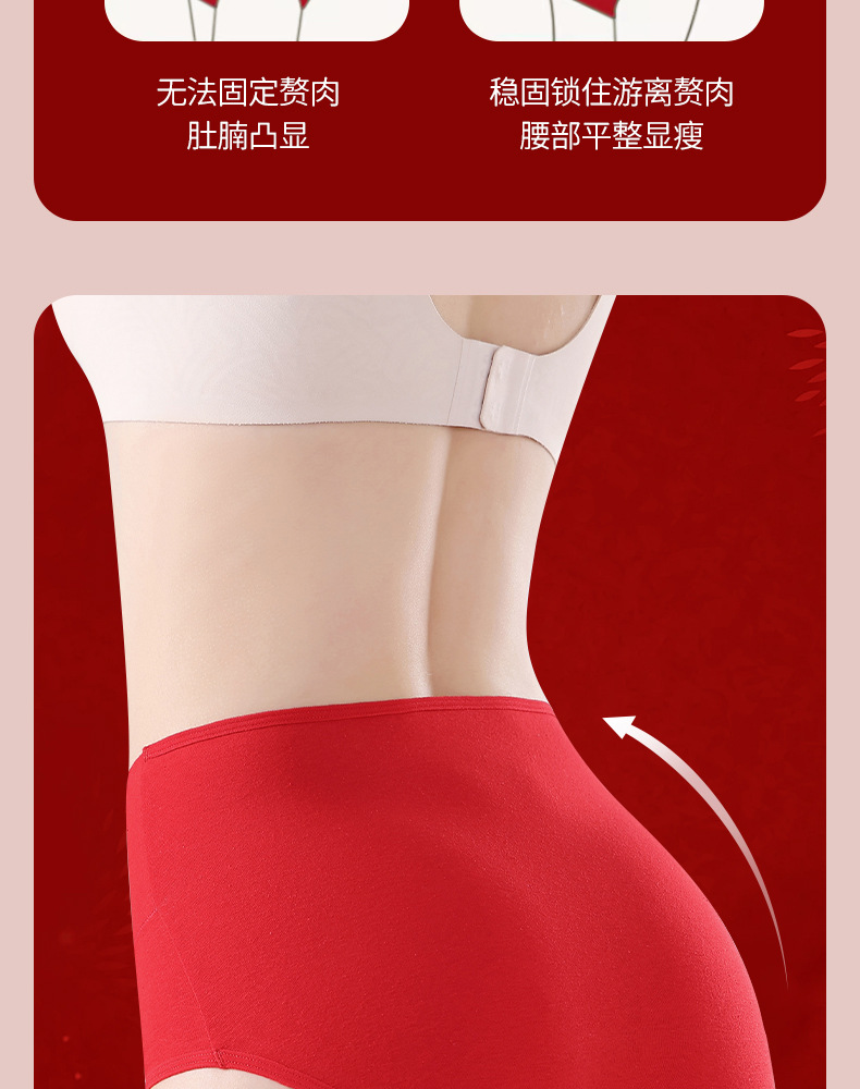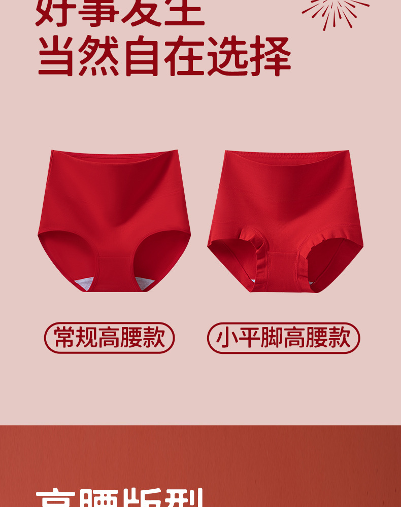 Ropa interior roja china 7A algodón puro antibacteriano año natal algodón cintura alta abdomen sin sujetar las caderas ropa interior de mujer de cintura alta de gran tamaño