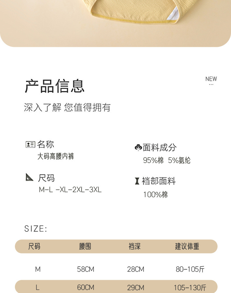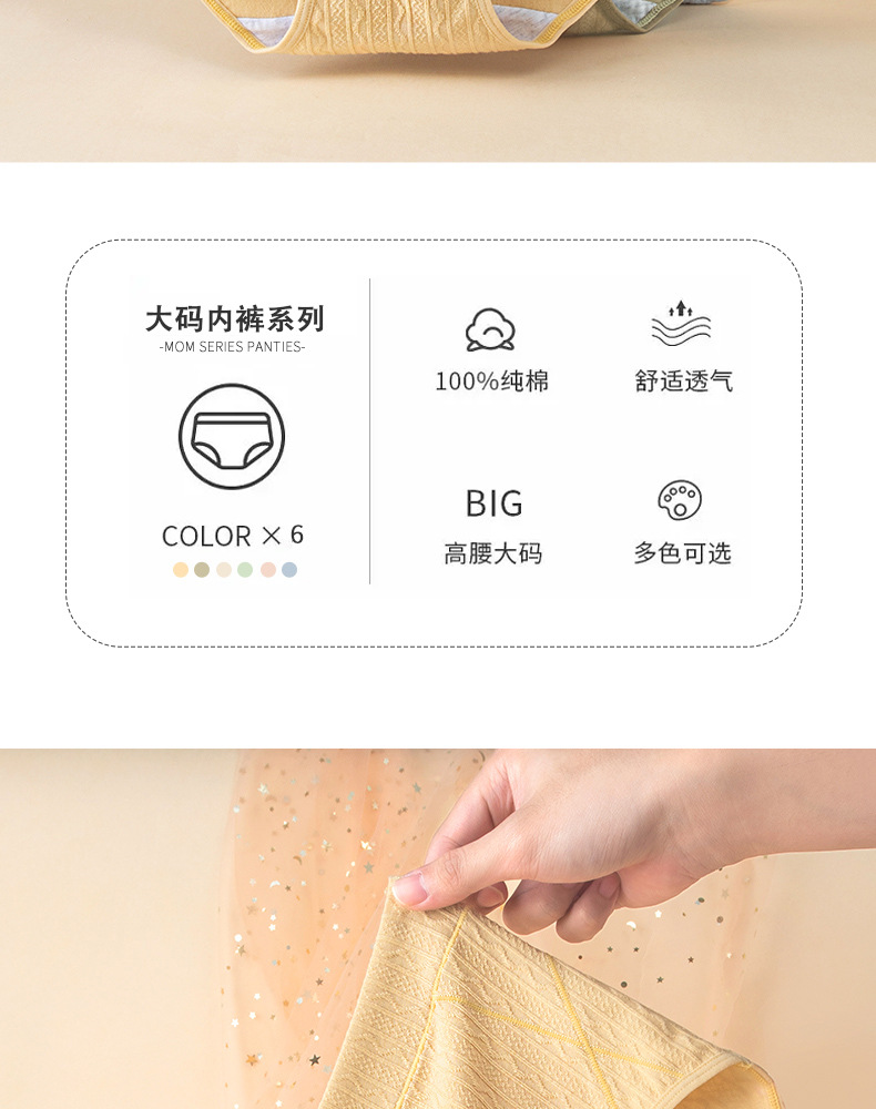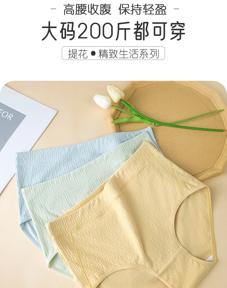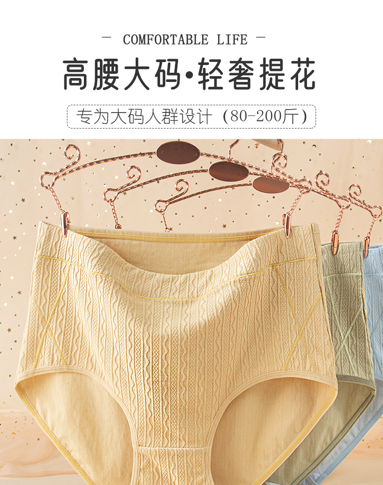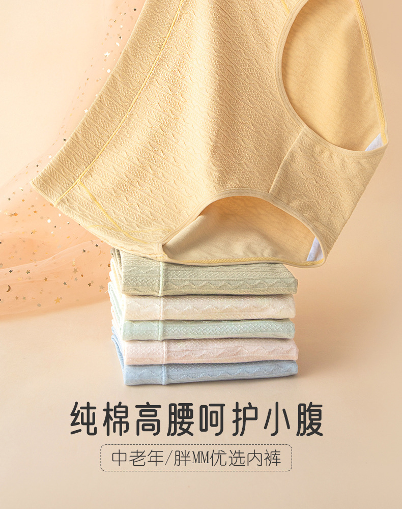 La primavera y el verano de algodón de alta cintura de contracción del vientre jacquard Plus size Plus BIG FAT Girl de mediana edad y ancianos Plus size Hip-wrapped algodón entrepierna ropa interior