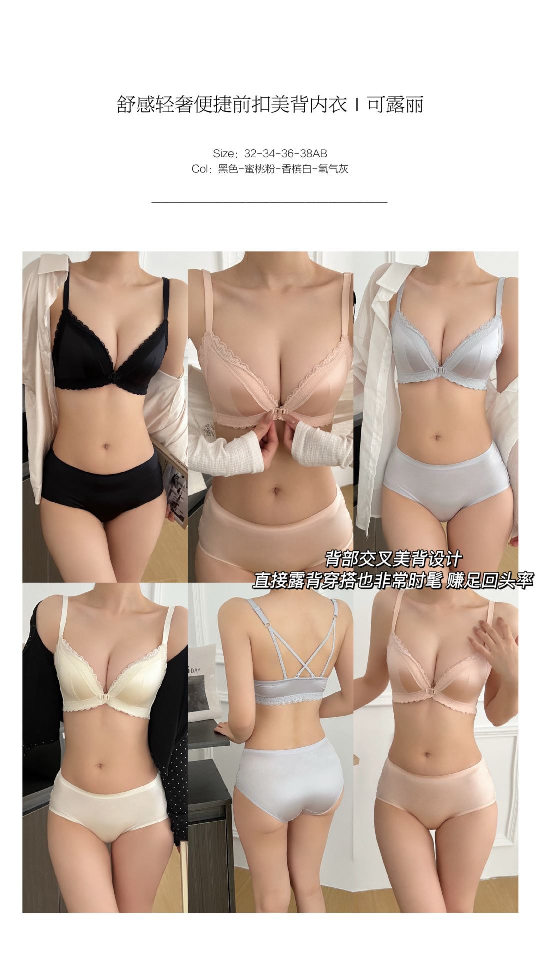 Ventas directas de fábrica comercio electrónico transfronterizo Sudeste de Asia Vietnam Tailandia damas forjado francés hebilla delantera convergente sujetador de texto cómodo