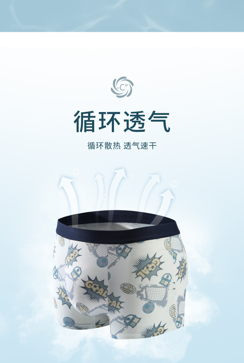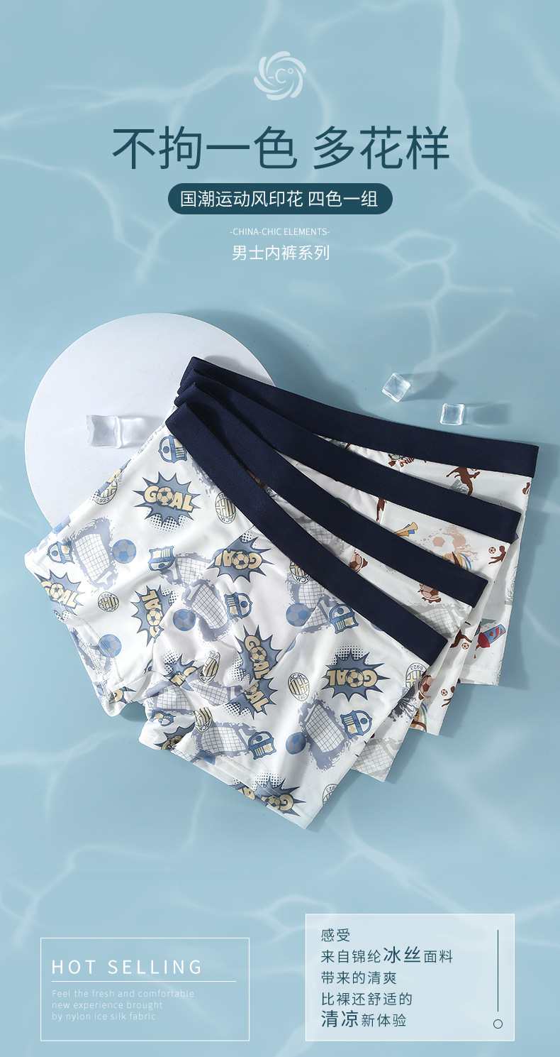Ropa interior de hombre, seda de hielo, pantalones de cuatro esquinas con estampado antibacteriano, ropa interior de niño bóxer transpirable y sin costuras para adolescentes delgados de verano