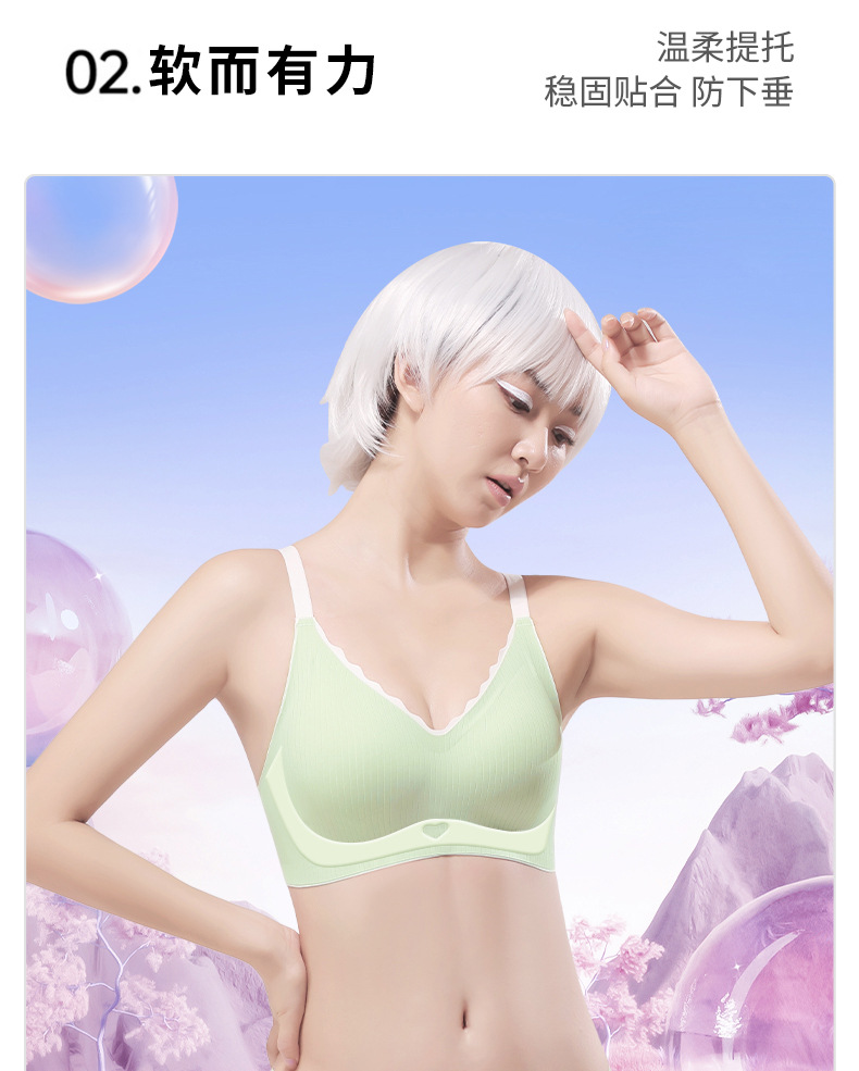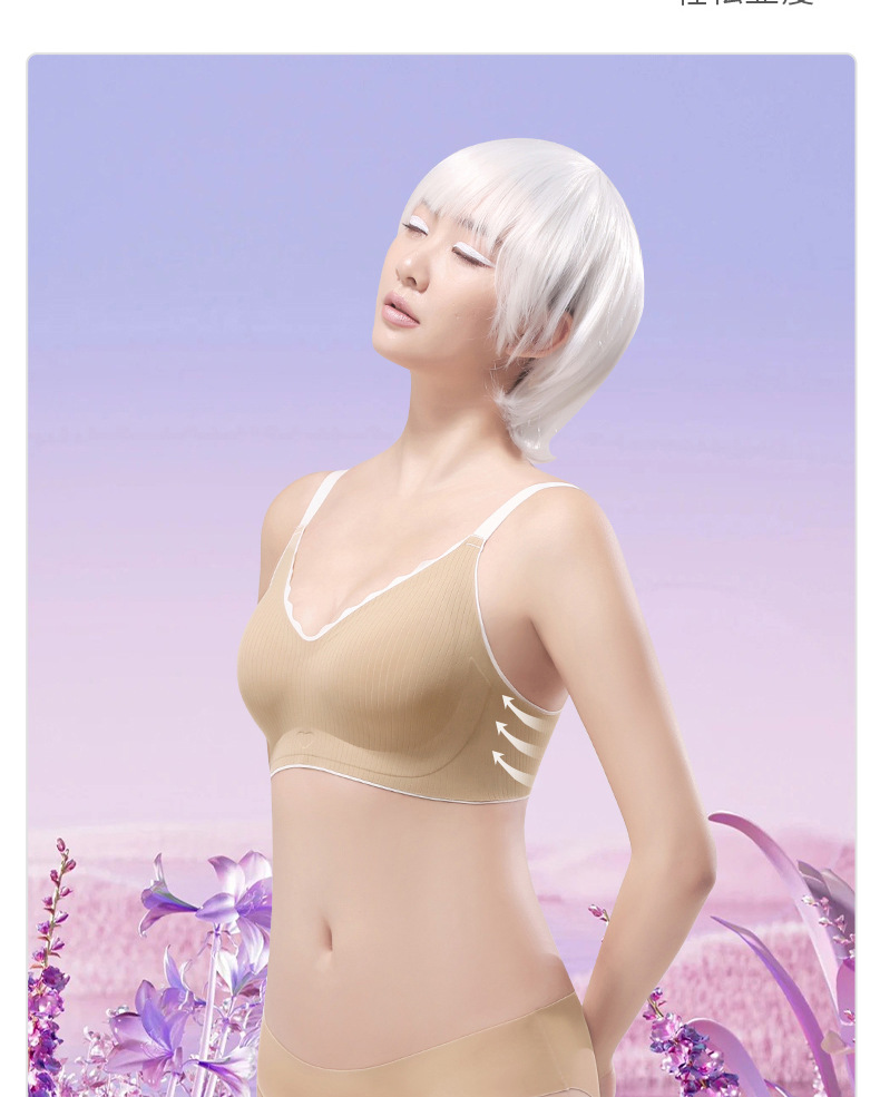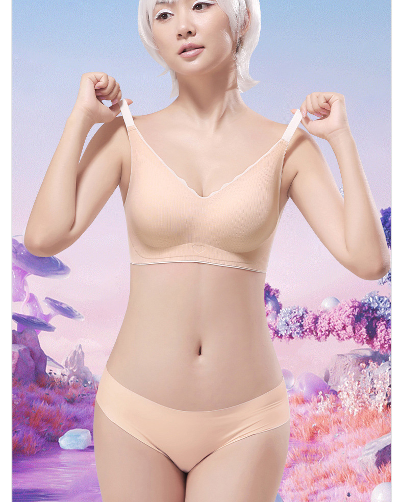 Ropa interior sin costuras para mujer, pecho pequeño, copa fija transpirable, sin anillo de acero, leche auxiliar, sujetador sexy anti-caída, estilo delgado